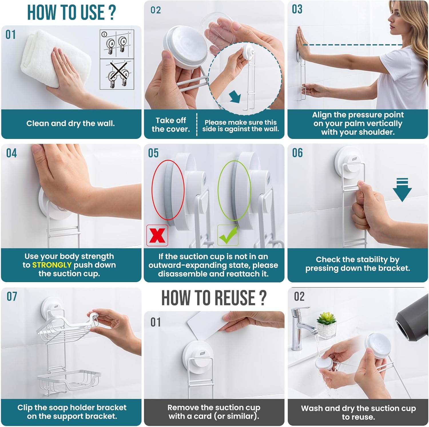 - STRONG SUCTION & DURABILITY. Soap dish shower is made of premium rustproof metal material. Our suction cup of bar soap holder based on the bionics octopus sucker principle is made of anti-aging TPE material, which hold up to 11 lbs. and can be firmly attached to the smooth surface. Can be reinstalled and removed many times without damaging the wall and without leaving a trace