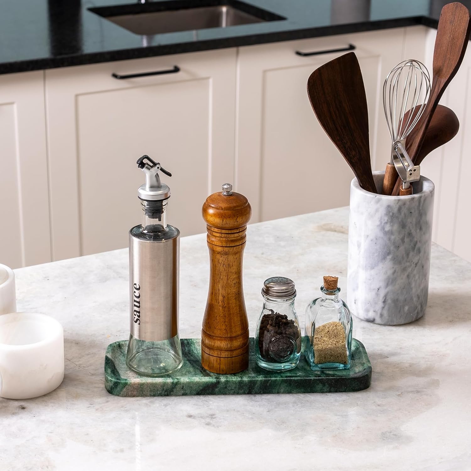 Koville Marble Tray for Bathroom Sink, 12"x4" Natural Stone Vanity Tray for Kitchen Dresser Countertop, Rectangular Decorative Marble Tray for Jewelry Perfume Trinket(Green)
