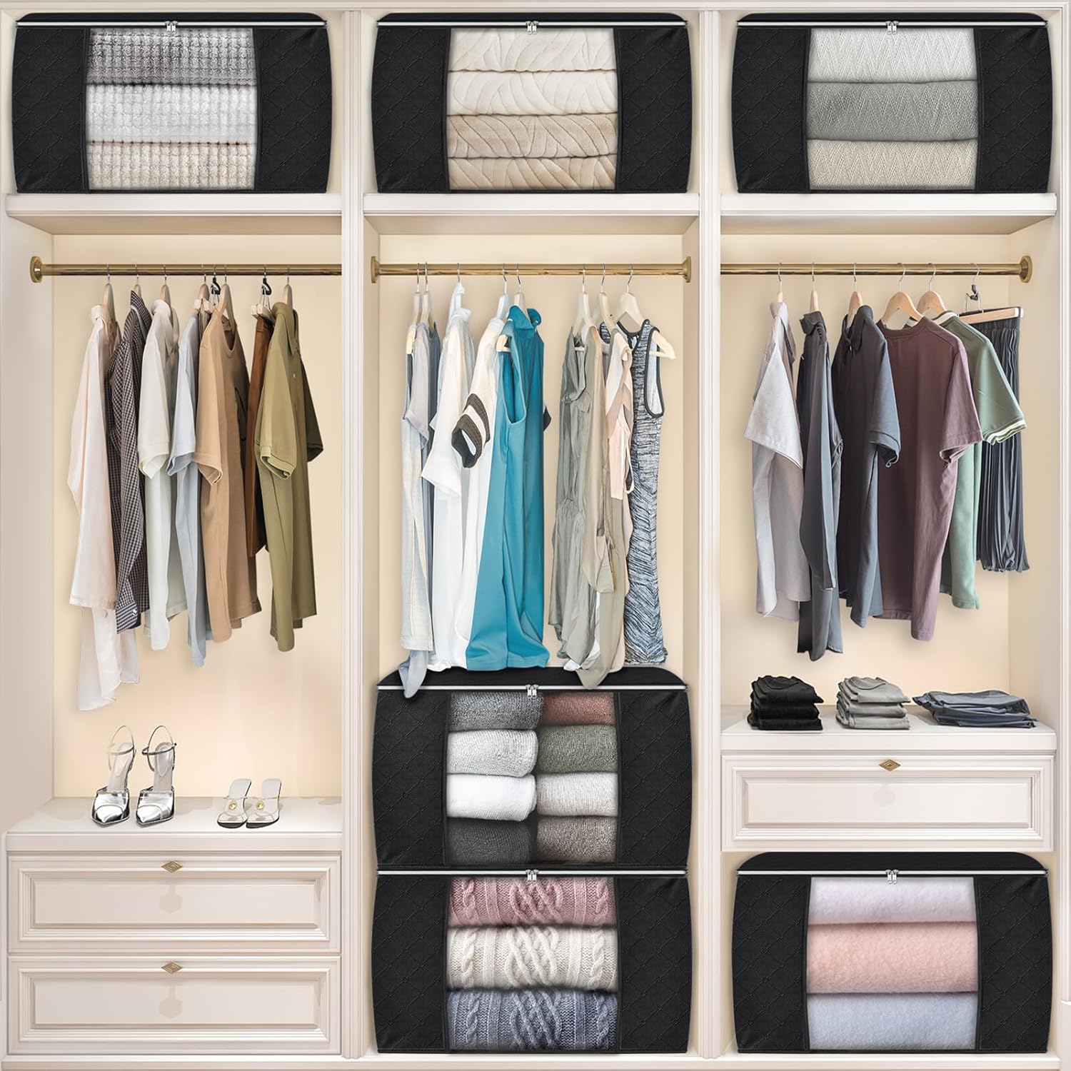 Fab totes 24 Gallons Clothes Storage, Foldable Thick Fabric Blanket Storage Bags, Containers for Organizing Bedroom, Closet, Clothing, Comforter, Organization with Handle (6 Pack,Black)