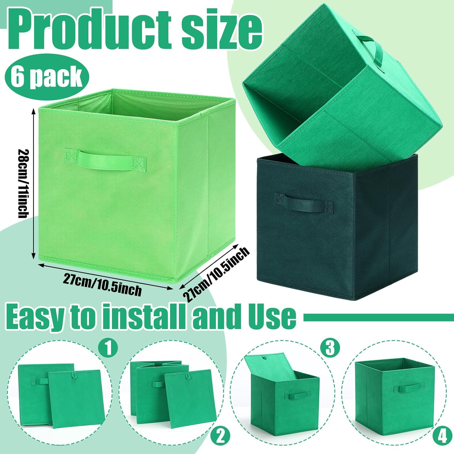 Karenhi 11" x 10. 5" x 10. 5" Green Storage Cube, 6 Pack Fabric Cube Storage Bins Organizer Box, Collapsible Baskets with Handles Foldable Shelf for Cloth Toys Home Room Closet, Pack of 6