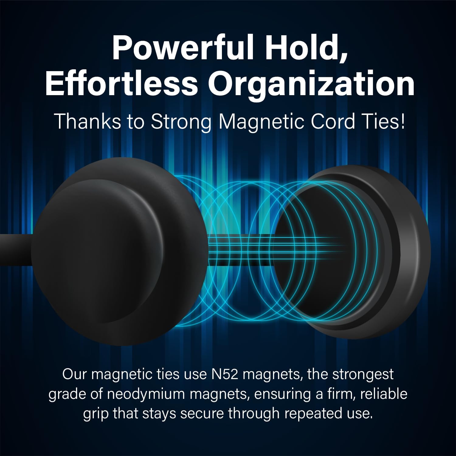 - Strong N52 Magnet Hold – These magnetic cable ties feature embedded N52 magnets that snap securely to keep chargers, wires, and accessories bundled without slipping.