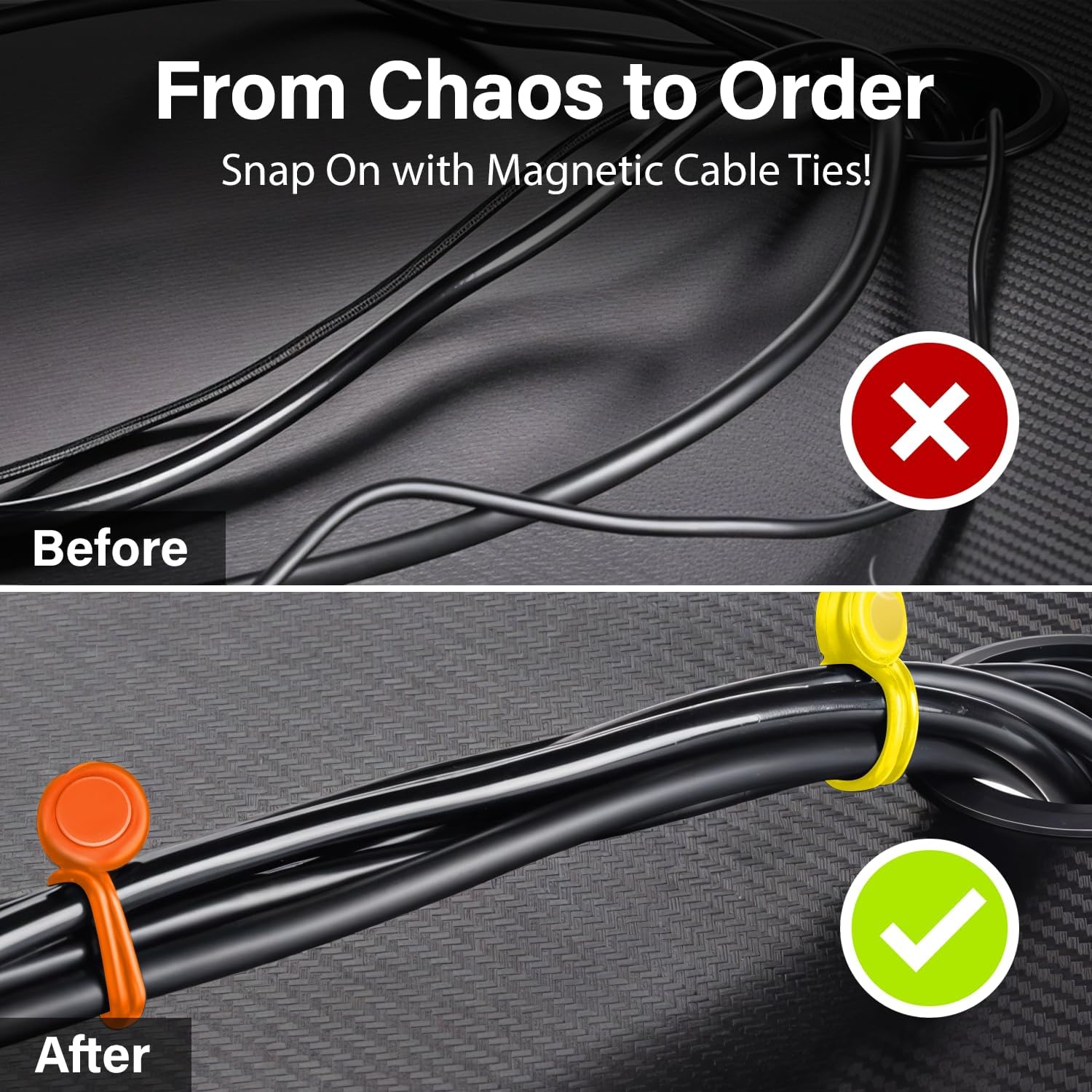 - 30-Pack with Assorted Colors – A complete set of silicone magnetic cable ties in bright colors for easy cable identification—ideal for desk wire management, computer cable management, and charging cord organization.