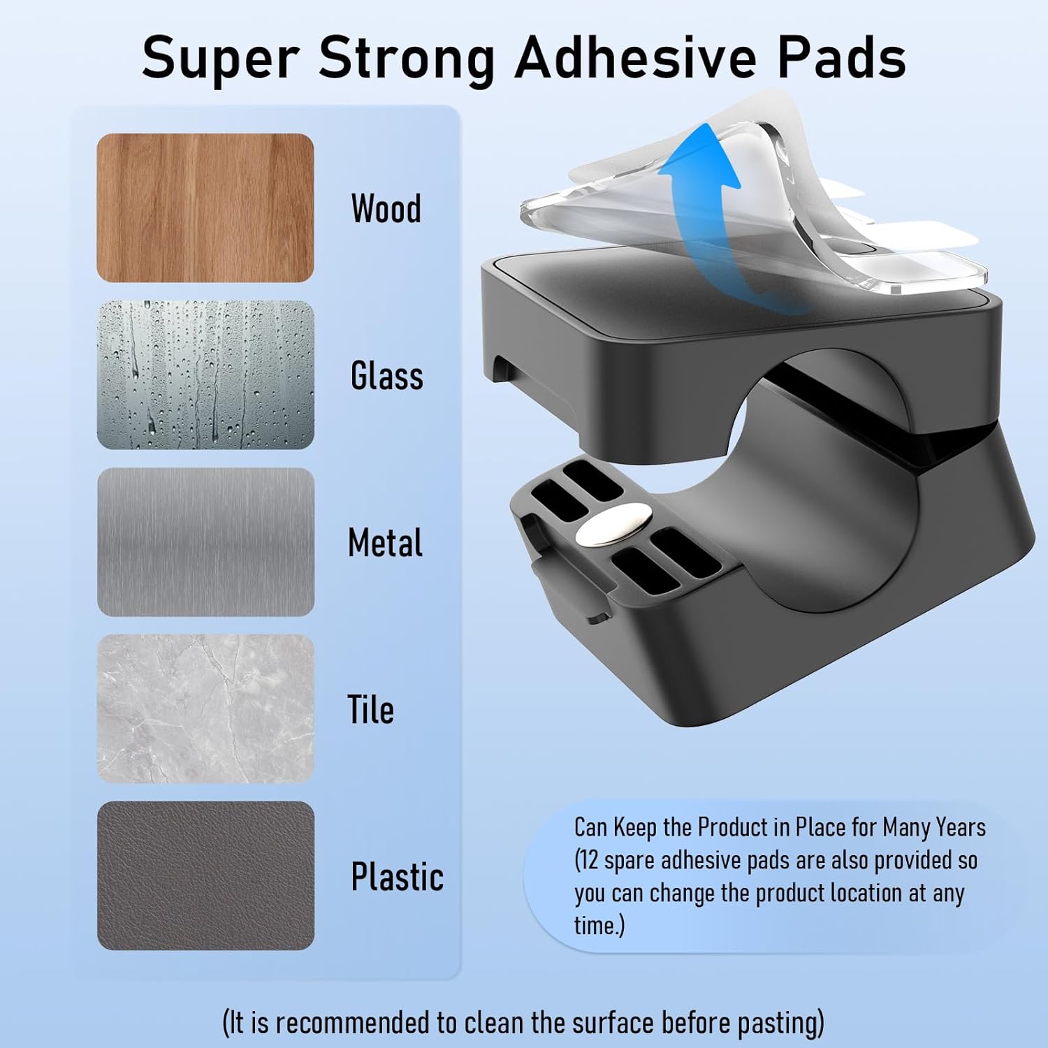 - 【Residue-Free Power Adhesive】Powerful professional PET adhesive pad ensures bonding strength. This strong adhesive ensures durable and reliable fixing on a variety of smooth surfaces including desks, table tops, wood, glass, tiles, walls, bedside tables and car dashboards. Remove cable management clips without any adhesive residue or surface damage!