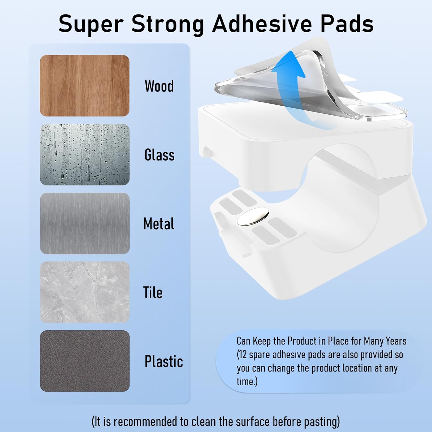 - 【Installation Tips】Before sticking, please use external alcohol (non-household cleaner) to clean the desired surface, keep pressing for 30 seconds to enhance the adhesive effect. It is highly recommended to wait 12-24 hours for better results. If you have any problem, please let us know and we will solve the problem for you within 24 hours.