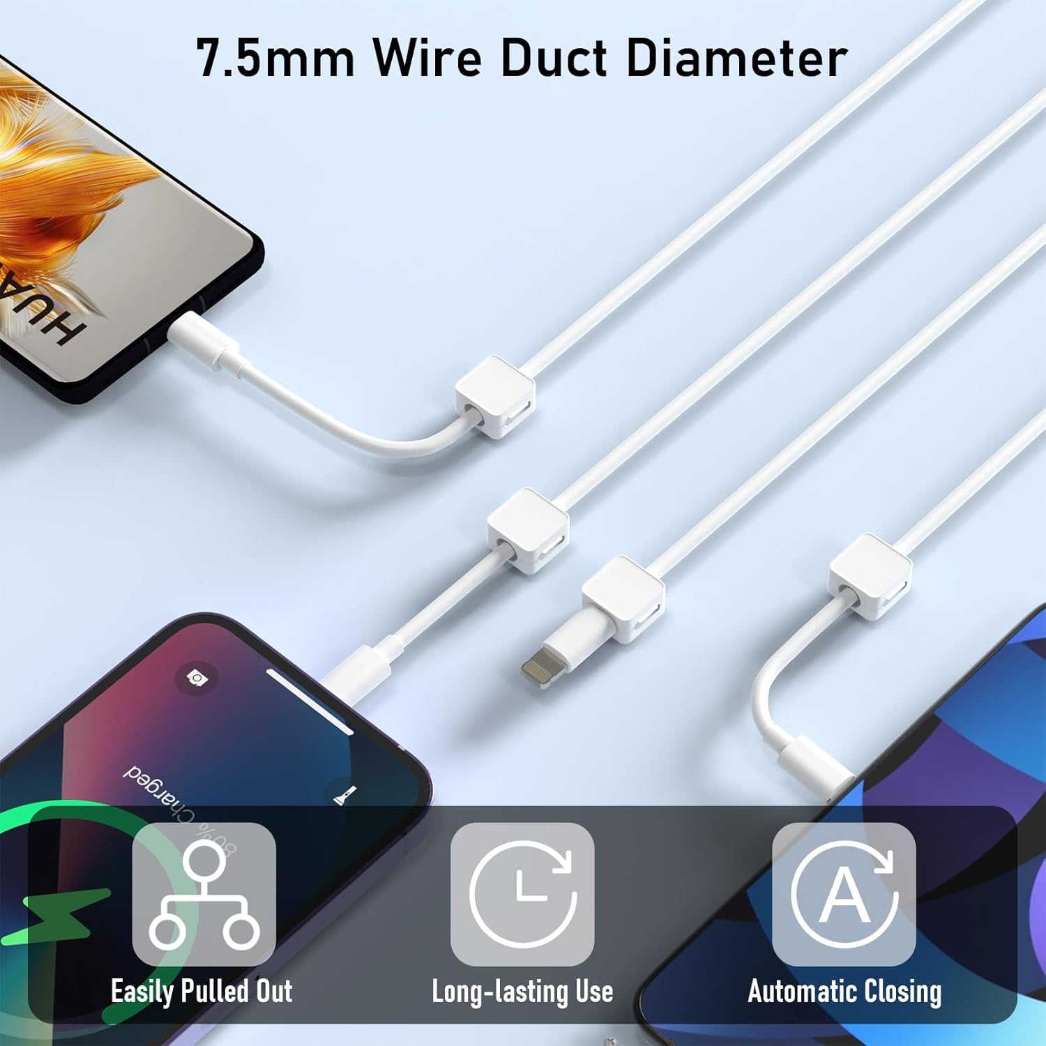 - 【Magnetic Locking, Anti-Dislodgement】Strong magnetic closure design, can easily store cables, strong magnetic cable clips, to ensure that your cables no matter how much pulling and tugging can be firmly fixed in place, this magnetic cable holder allows you to quickly and safely place and remove charging cables with one hand and so on.
