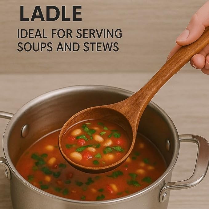 - [100% NATURAL & FOOD-SAFE] – Made from high-quality, eco-friendly wood, these utensils are completely free from BPA, plastic, and harmful chemicals, ensuring a safe cooking experience.