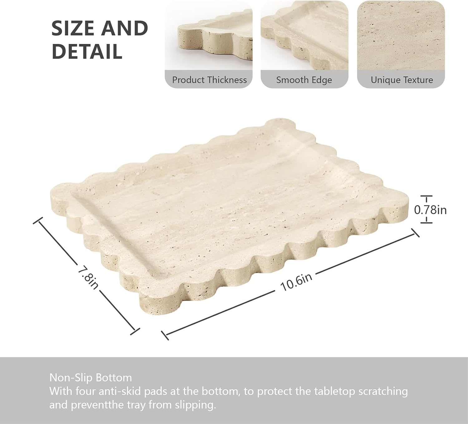 Decorative Marble Tray - Rectangular Bathroom Countertop Organizer for Vanity, Jewelry Display, Perfume(10.6"x7.8")