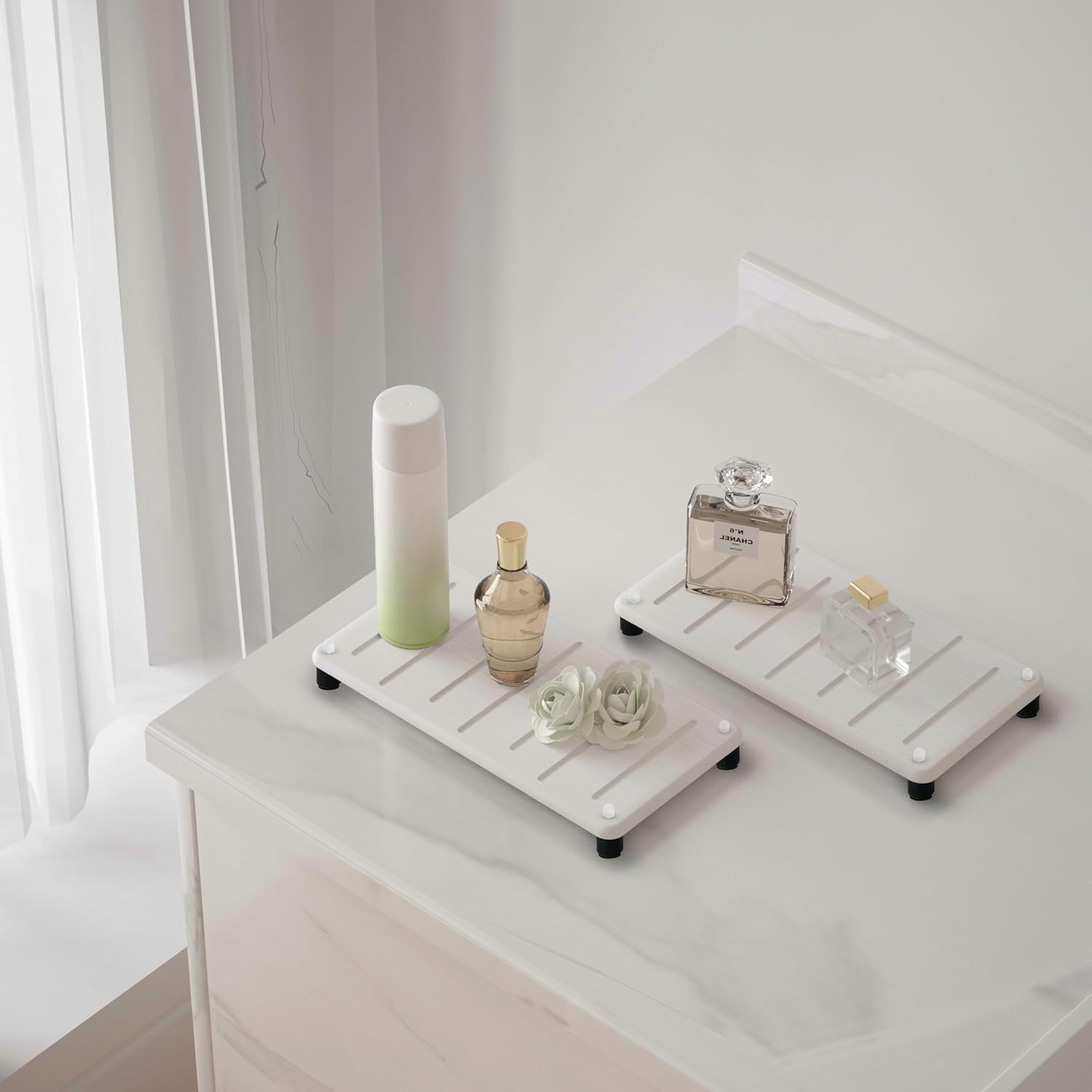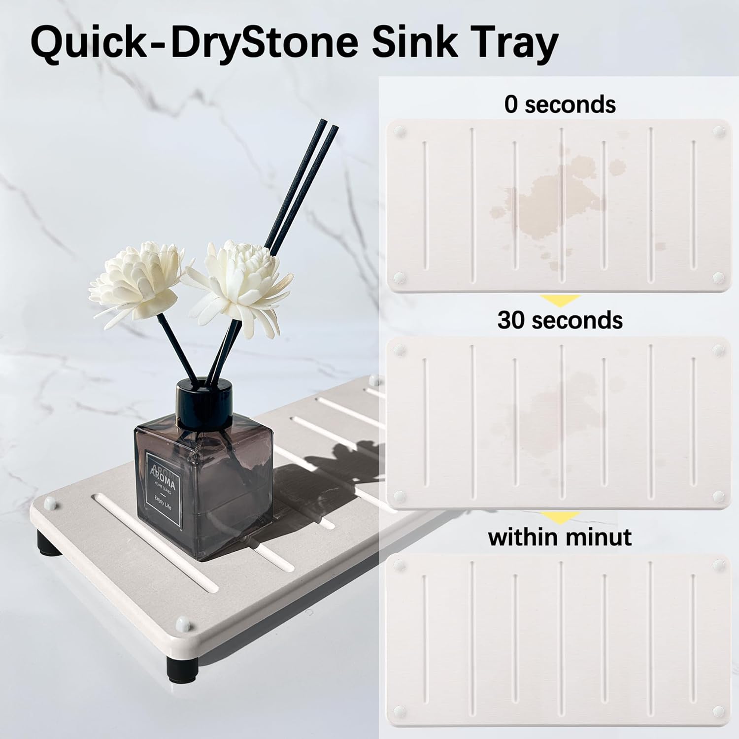 2PCS Water Absorbing Stone Drying Mat for Bathroom Sink & Kitchen Counter Organizer, Instant Dry Soap Dispenser Sponge Holder, Sink Caddy, Vanity Tray (10"x5"-White)
