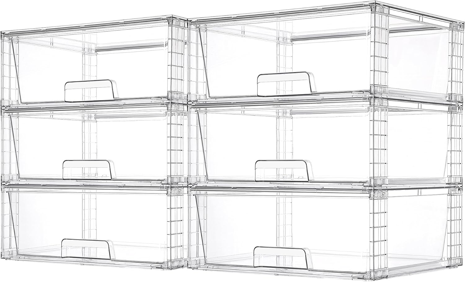 Vtopmart 6 Pack Large Stackable Storage Drawers,Easily Assemble Acrylic Bathroom Closet Undersink Organizers and Storage,Plastic Storage Bins for Kitchen Cabinets,Pantry,Makeup,Medicine Organization