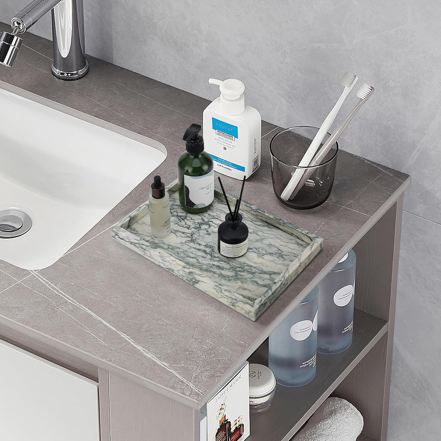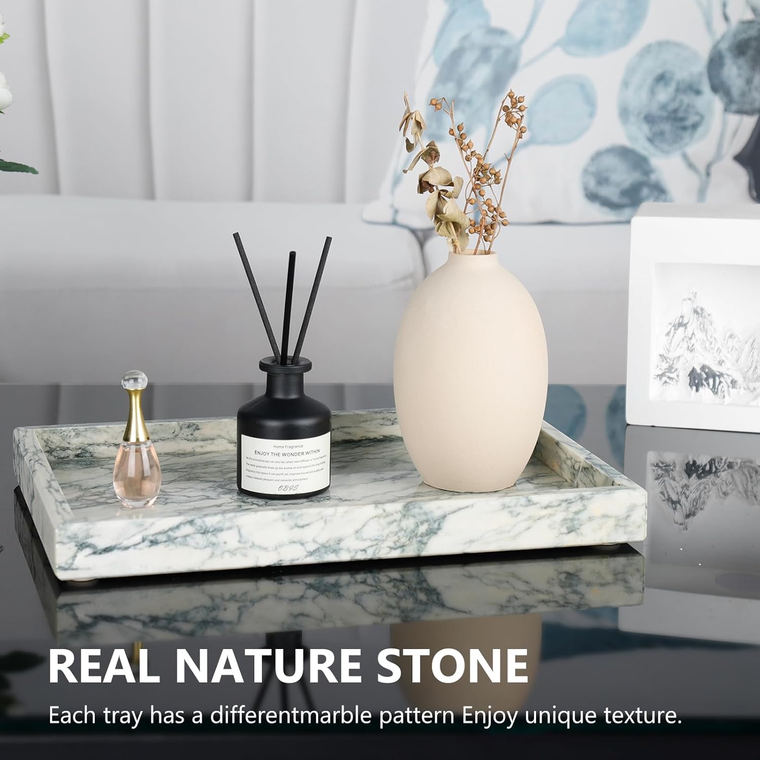 - Safe and Practical Design: The bathroom marble tray is fitted with anti-skid pads on the bottom, preventing slips and protecting your countertops from scratches. Our storage tray is durable, with a smooth and sturdy surface that's easy to clean. Simply wipe it clean with a dry cloth to maintain its natural shine.