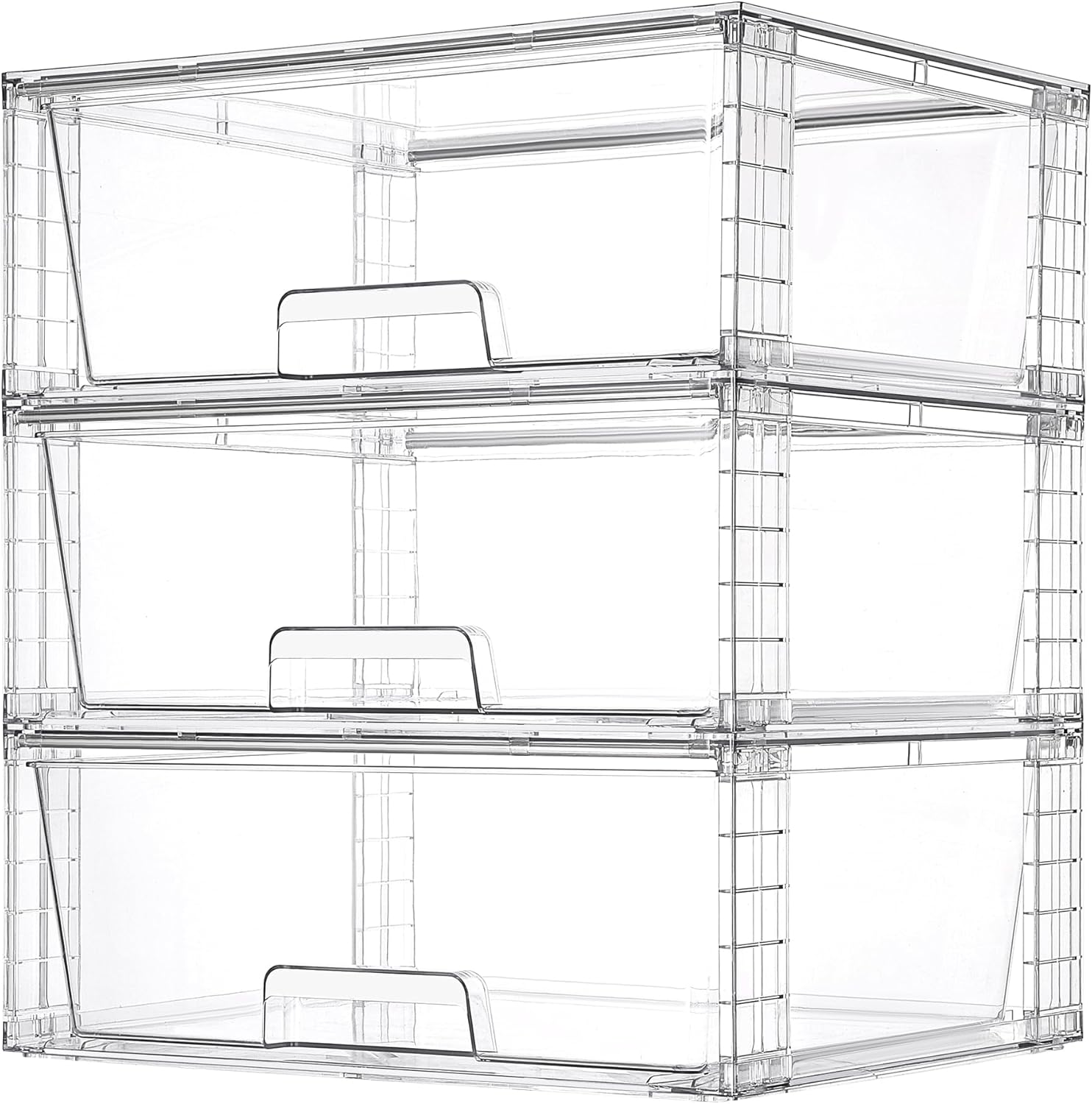 - Pull-out & Install Easily--These stackable drawers built-in sliding rail allow you to open and close these acrylic drawers smoothly. Place anti-slip silicone pads on the bottom of the acrylic box to enhance stability and prevent sliding. Simply insert the connecting holders into the grooves of the bottom plates and secure the upper plate, enabling tool-free installation.