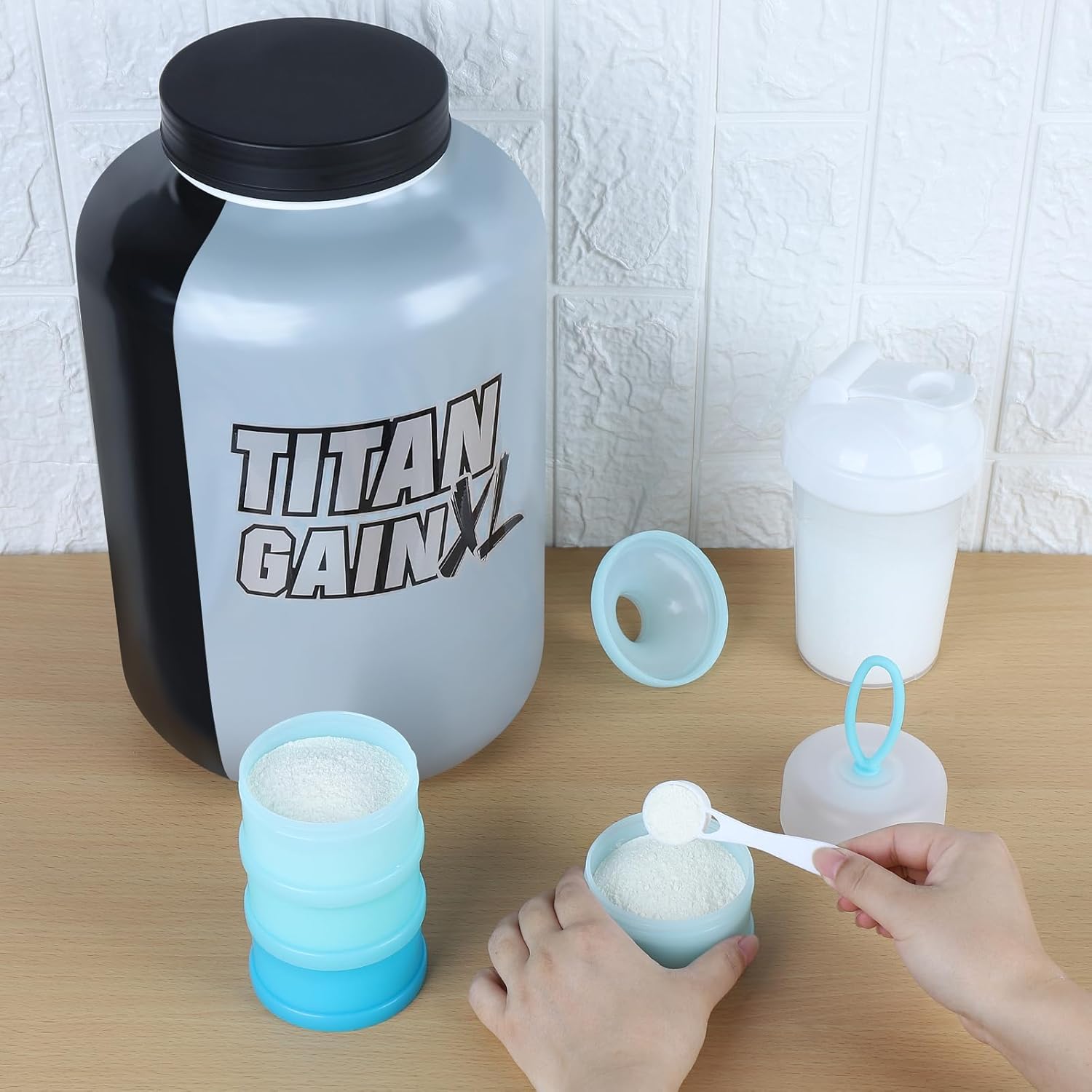 - Capacity - 4 layers design, each layer can contain 4 oz. You can put quantity of protein powder to be taken at one time in each layer compartment, and totally carry 4 times of protein powder for outdoor need, very convenient and practical.