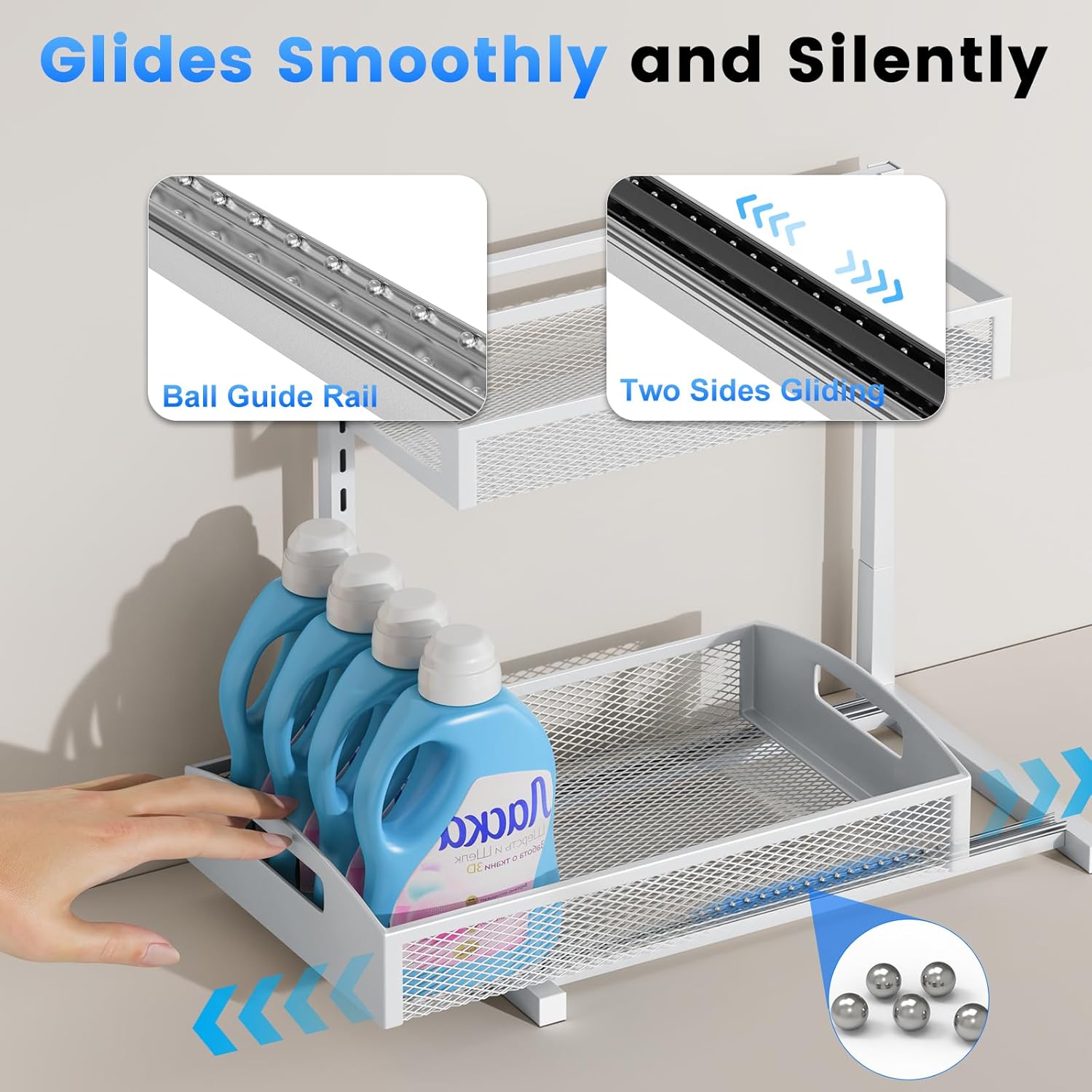 - Professional-Grade Ball Slide System: Engineered with industrial-strength steel ball bearings, this organizer glides like butter—no jams, squeaks, or wobbles. Users rave about its "silky-smooth pull-out action" that effortlessly handles heavy-duty loads, making toiletries and cleaning supplies instantly accessible. Perfect for those tired of digging through cluttered cabinets.