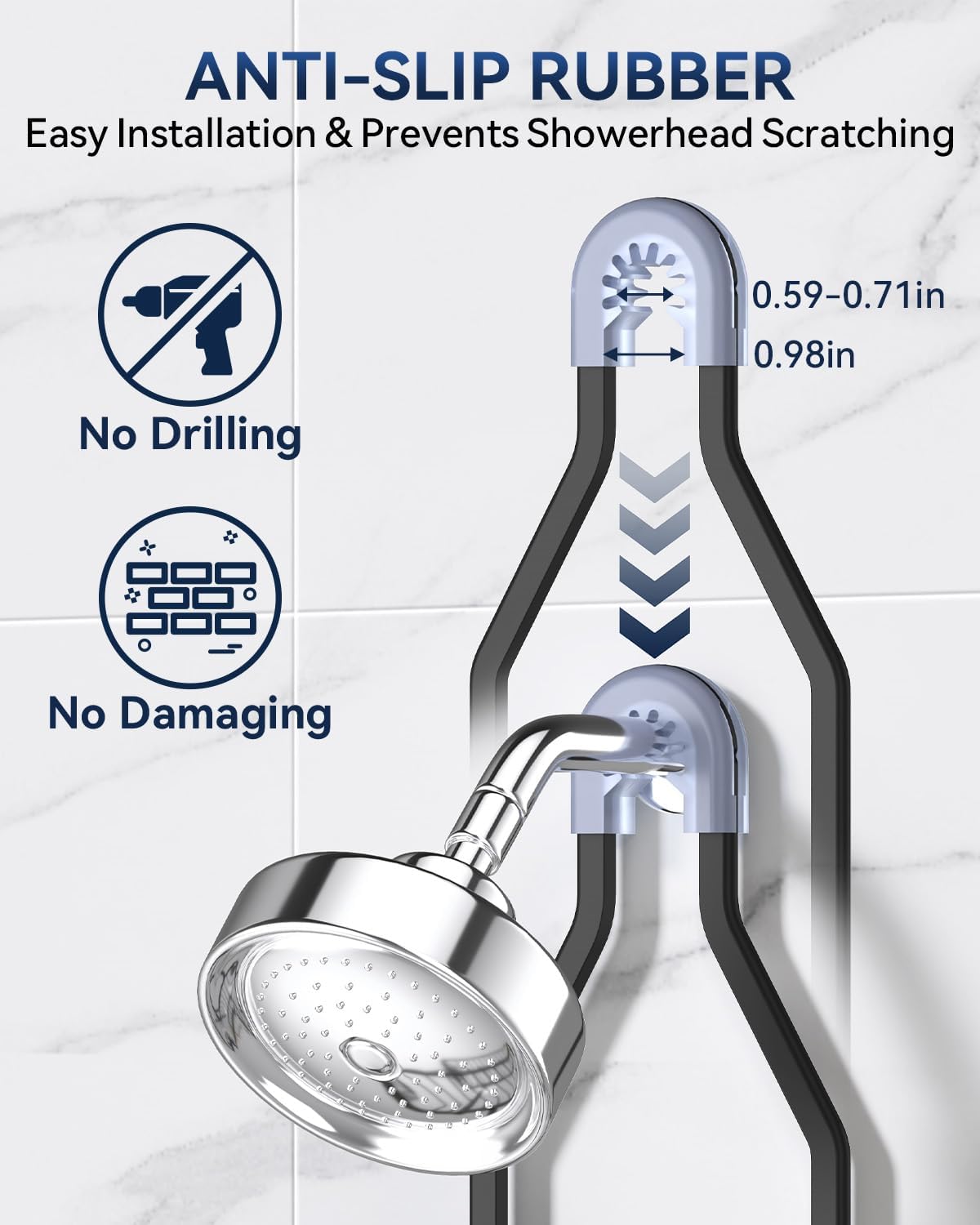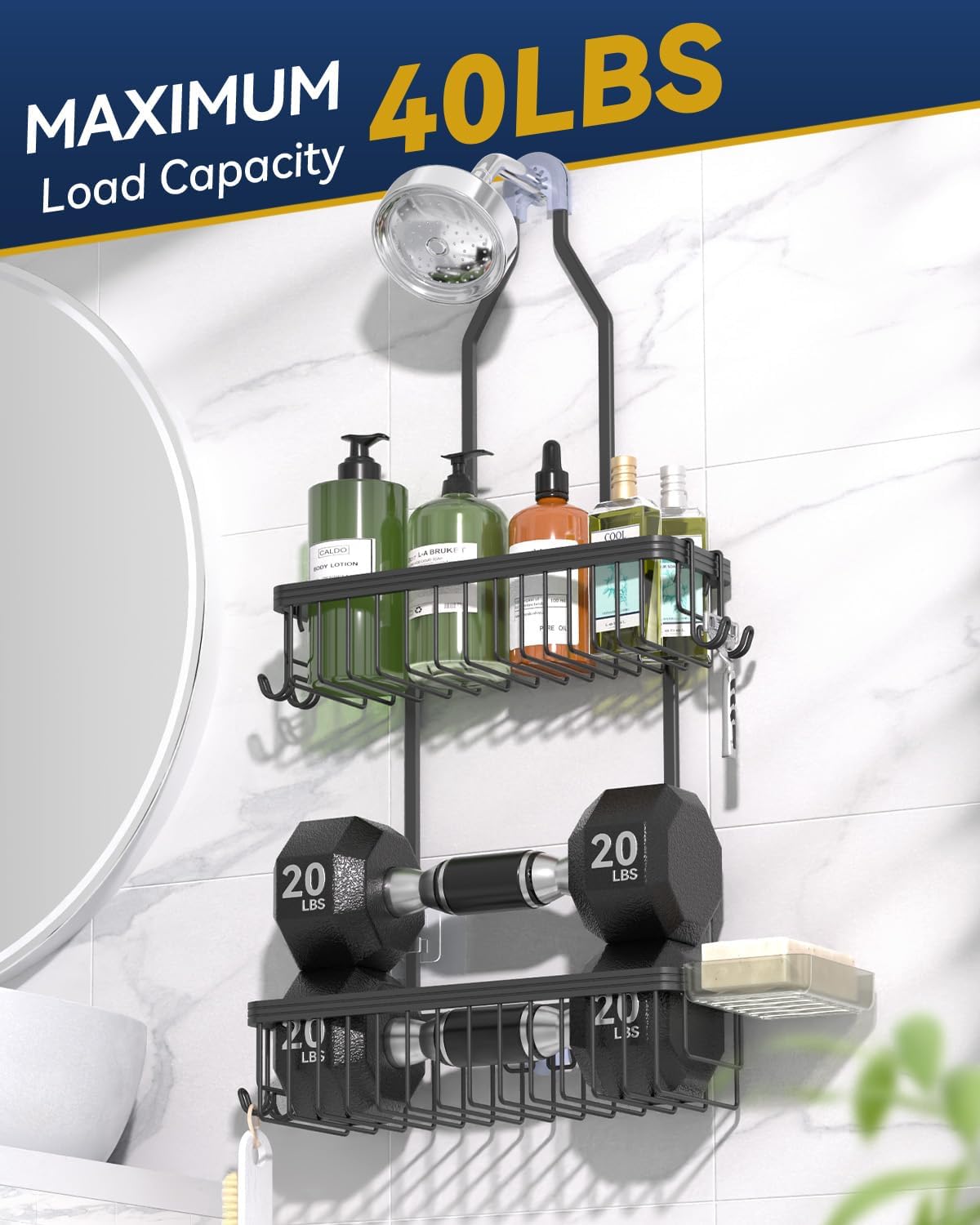 - Ergonomic Design & Universal Fit: Unlike other shower hangers, our upgraded shower holder features an expanded height between shelves, which allows the lower tier to accommodate taller and larger bottles without interfering with the upper shelf or your showerhead. Also, the bathroom organizer fits most-sized showerheads