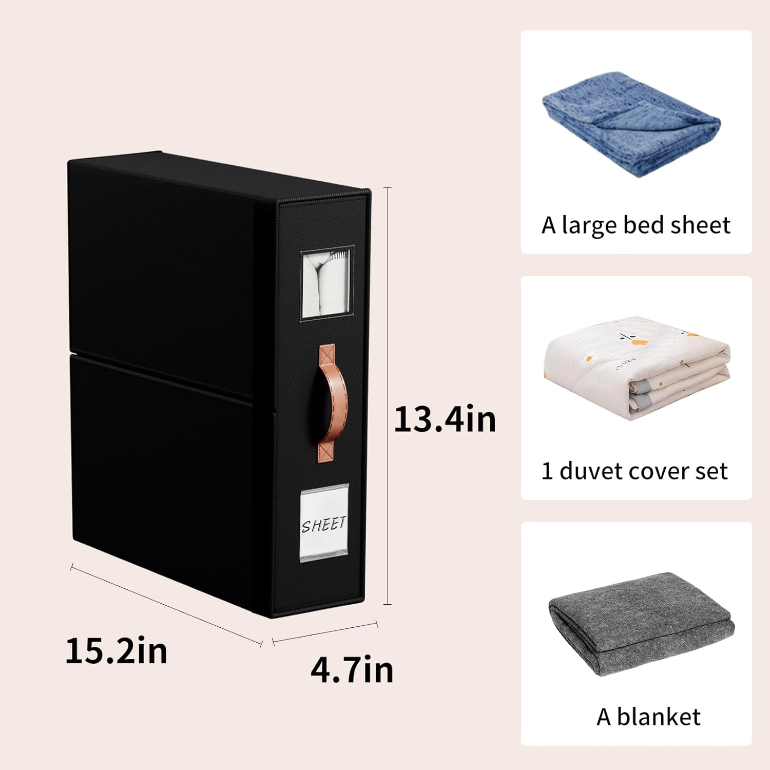 - Saving Room Space : The Sheet Set Organizer will keep your sheets neat and organised.Each can store 1 king or queen size sheet and 1 duvet cover, 2 pillowcases.Keep your closet neat, creating more space for storage.