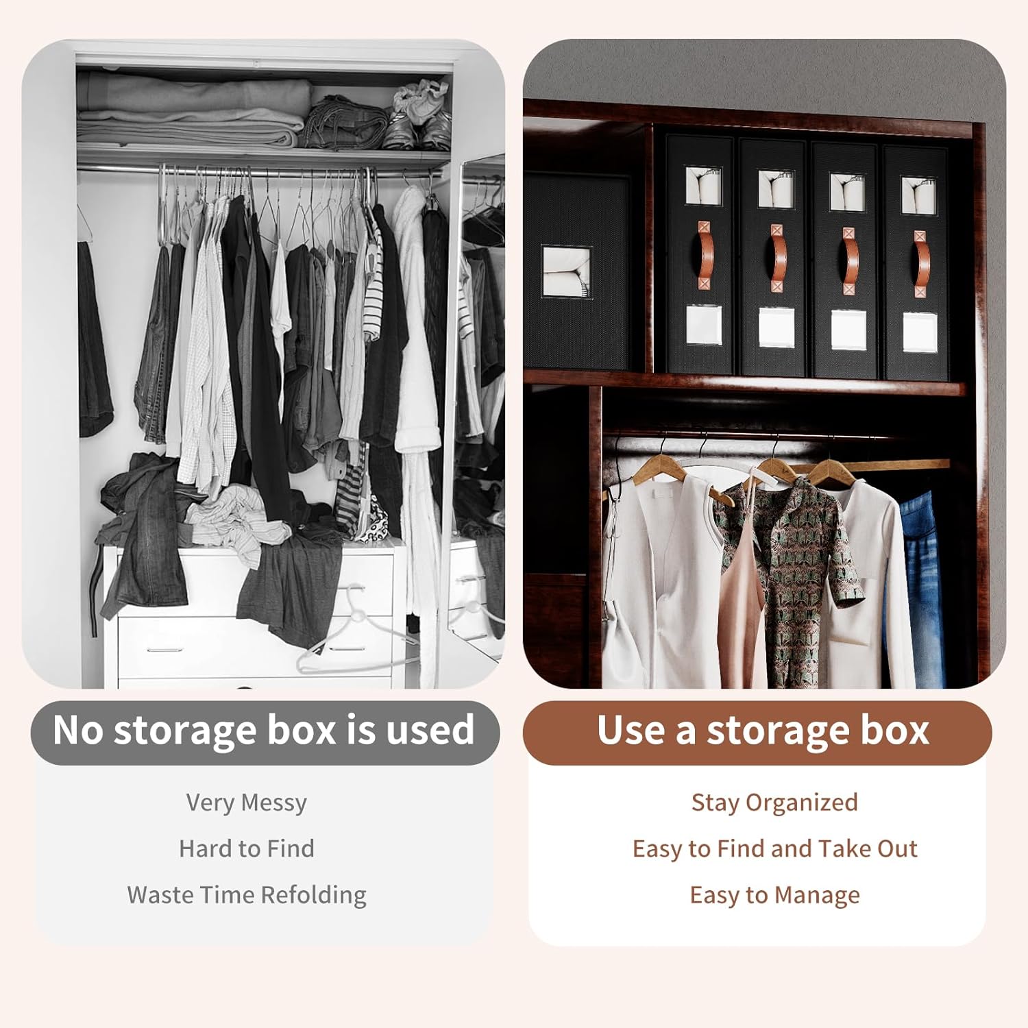 4 Pack Bed Sheet Storage Organizers- Premium Fabric Closet Organizer with Clear View Window, Space-Saving Foldable Design for Queen/King Size Bedsheets, Blankets & Duvet Covers