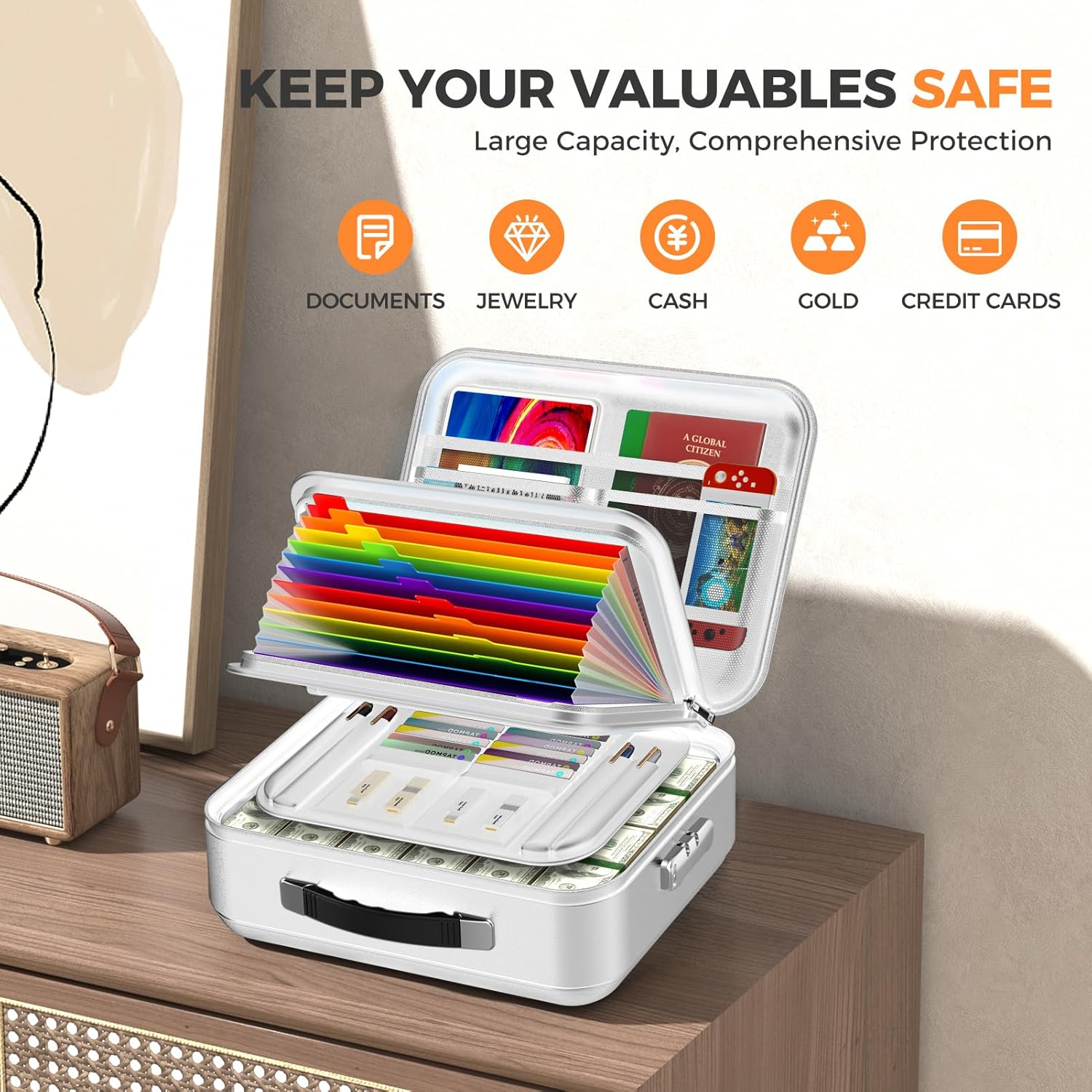 - Total Peace of Mind Protection: Go beyond basic fire safety. Our fireproof document box offers crucial additional defense against fire, water damage, and physical impact, safeguarding irreplaceable items