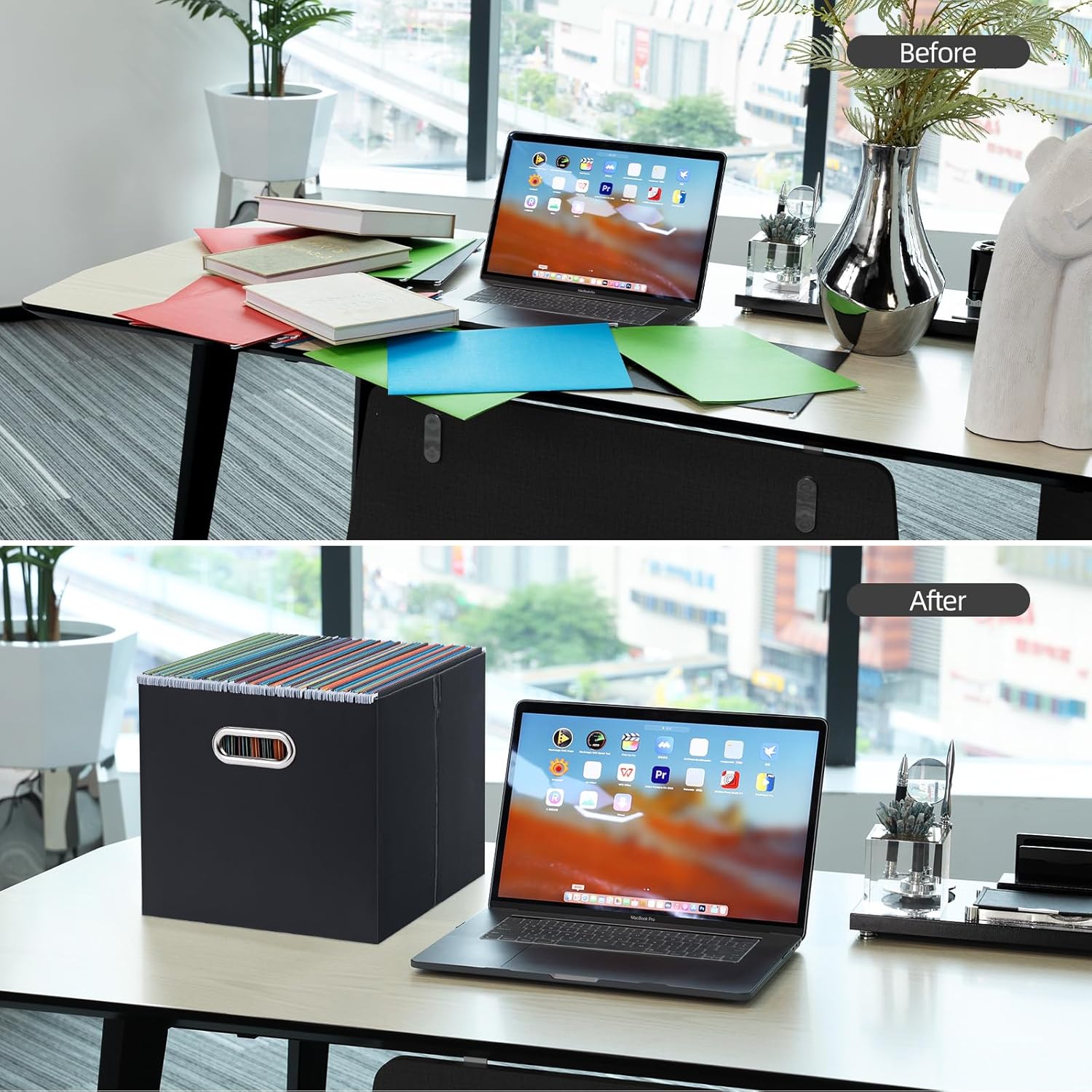 Oterri Cardboard File Organizer Box for Hanging File Folders Letter Size,Large File Box for Computer Desk,File Cabinet,Working Home,Office,Classroom (Black, Letter Size - 2 Packs-Large)