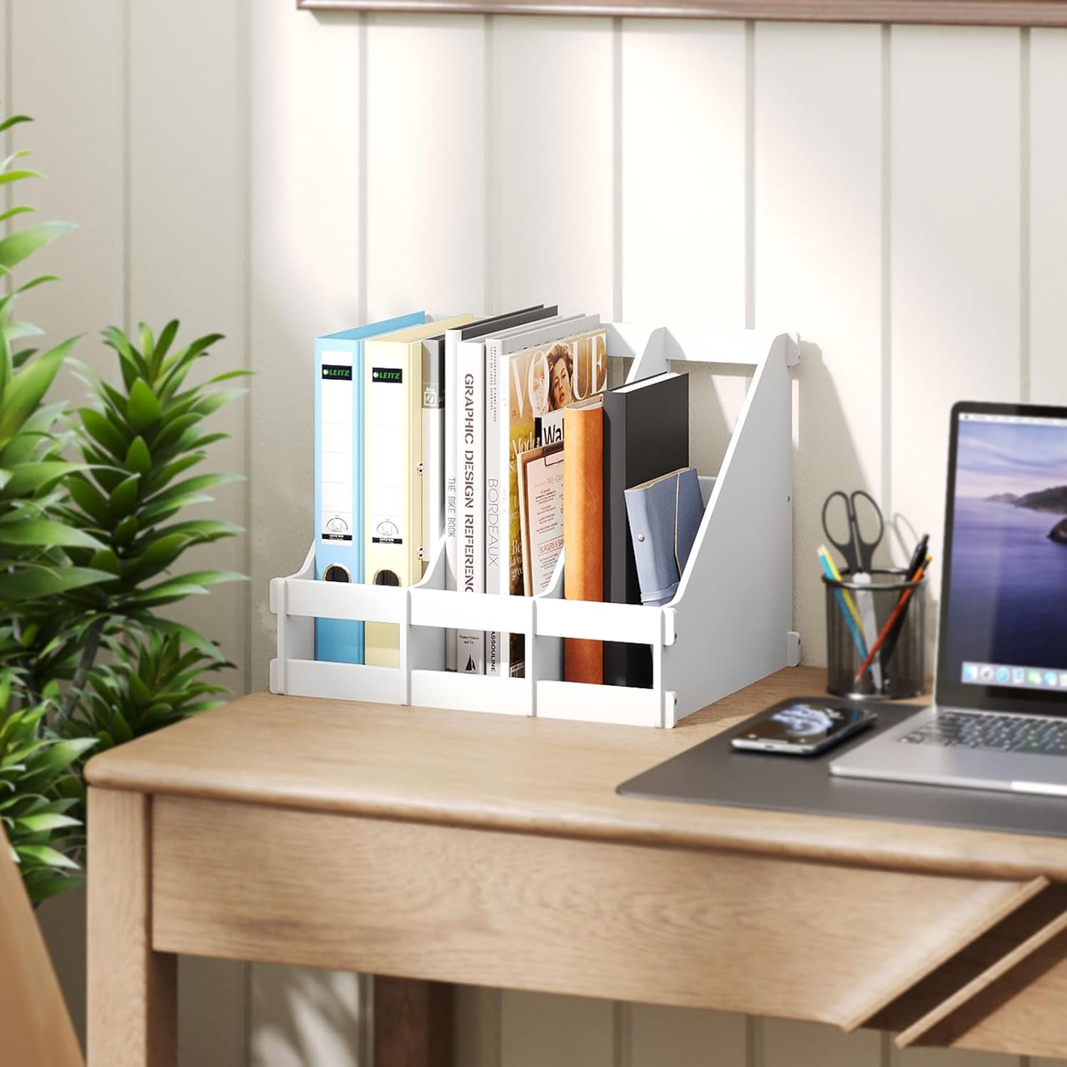- Desktop File Organizer: This file organizer for desk is a perfect choice to organize magazines, books, mail, catalogs, reports, file folders etc. Keep your desktop neat.