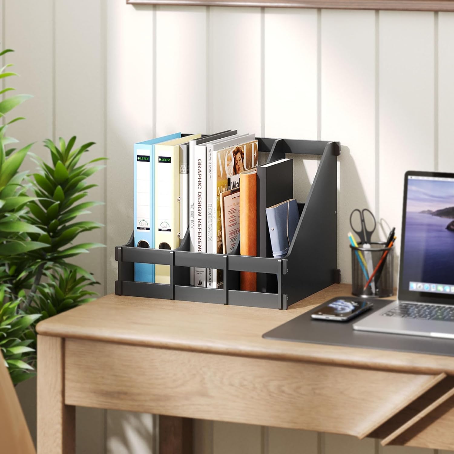 - Desktop File Organizer: This file organizer for desk is a perfect choice to organize magazines, books, mail, catalogs, reports, file folders etc. Keep your desktop neat.