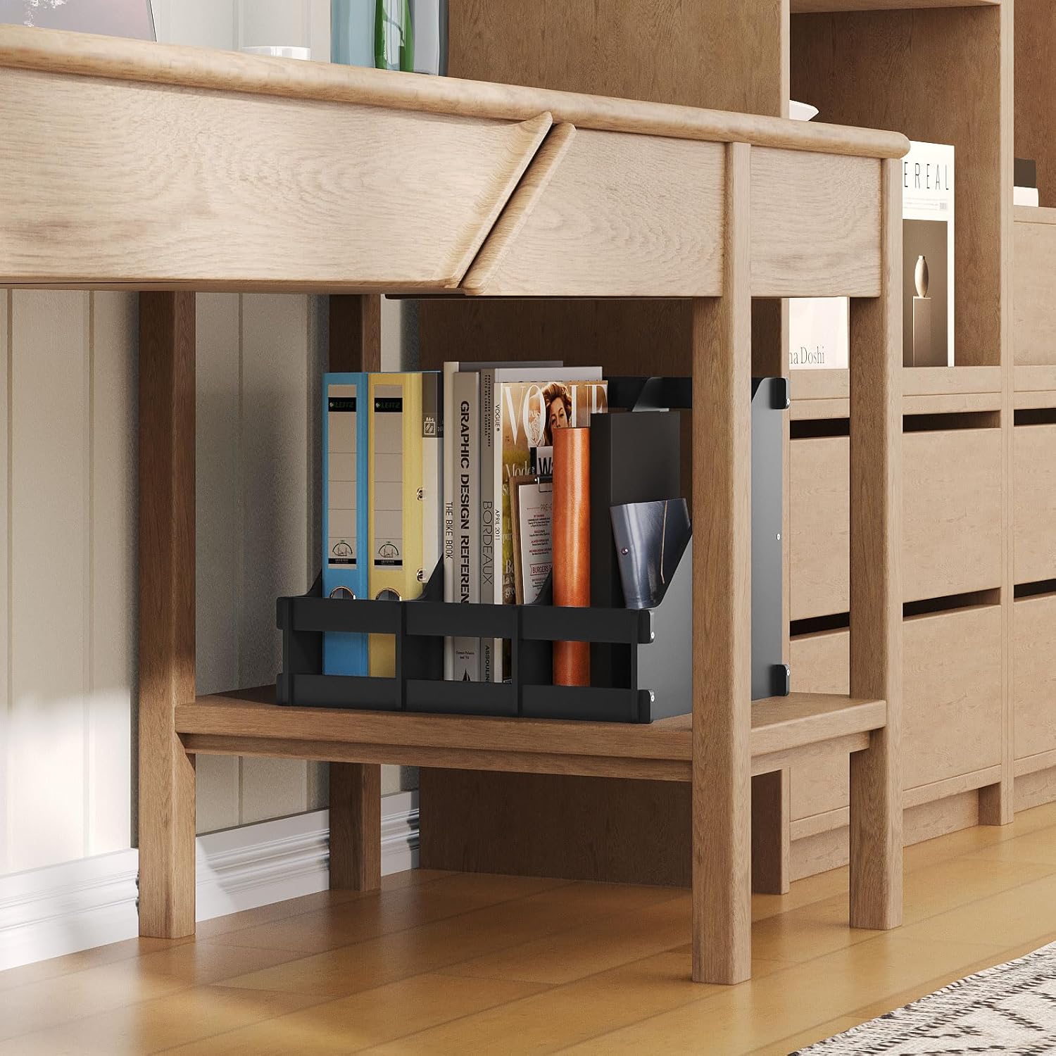 - Space Saving: Large capacity wood magazine file holder having 3 compartments for organizing everything on your desktop, saving a lot space for daily work.