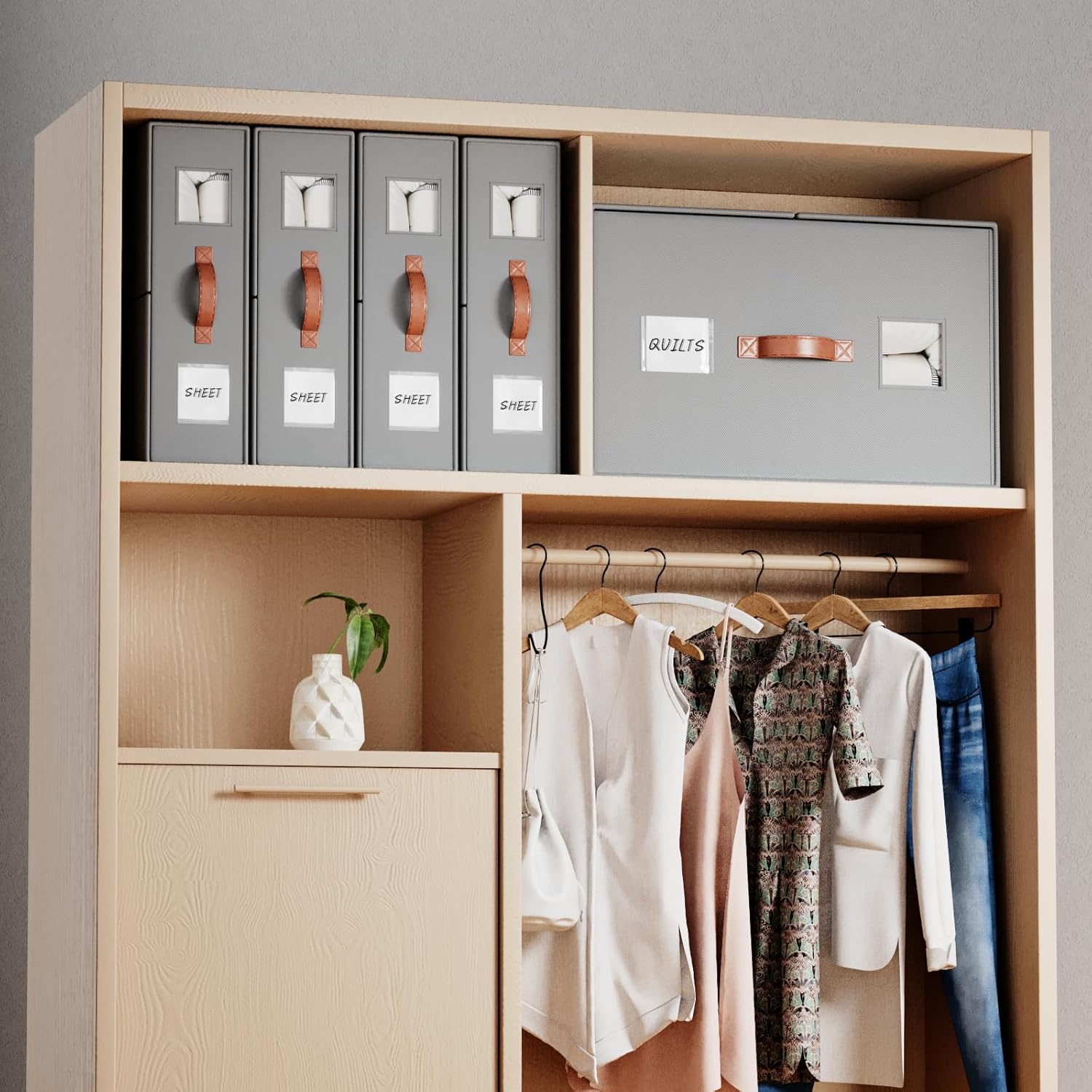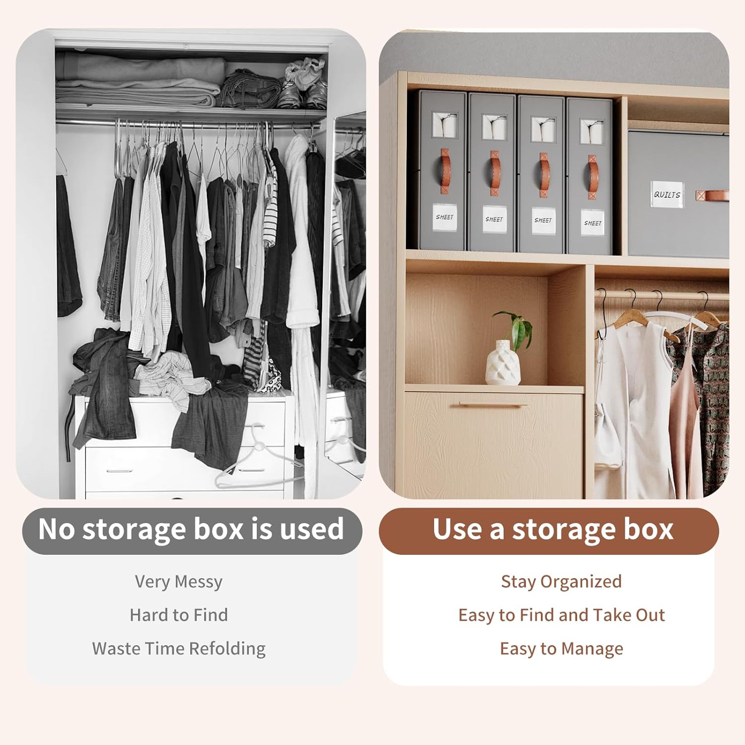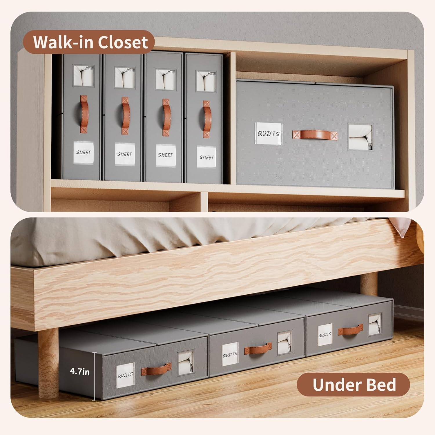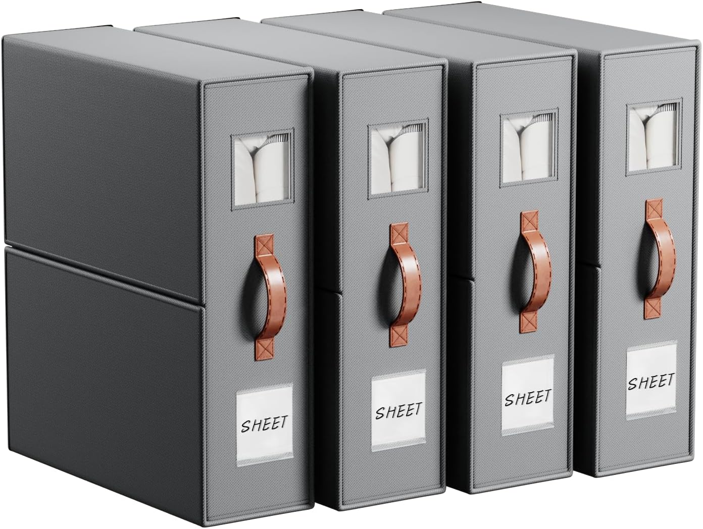4 Pack Bed Sheet Storage Organizers- Premium Fabric Closet Organizer with Clear View Window, Space-Saving Foldable Design for Queen/King Size Bedsheets, Blankets & Duvet Covers