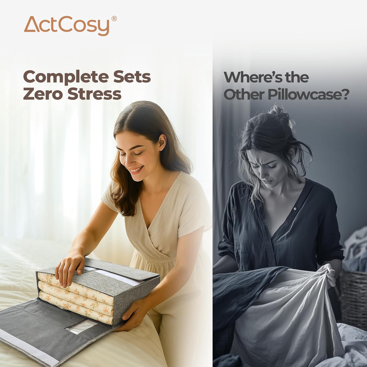- ● [Dustproof & Moisture-Resistant Design] - Featuring a three-layer structure (linen-type cloth on the outside, rigid cardboard in the middle, and non-woven fabric on the inside), our sheet storage organizer protects bedding from dust, pet hair, and humidity, keeping sheets clean and fresh during storage. It’s ideal for seasonal storage, such as holiday linens, sweaters, or summer blankets.