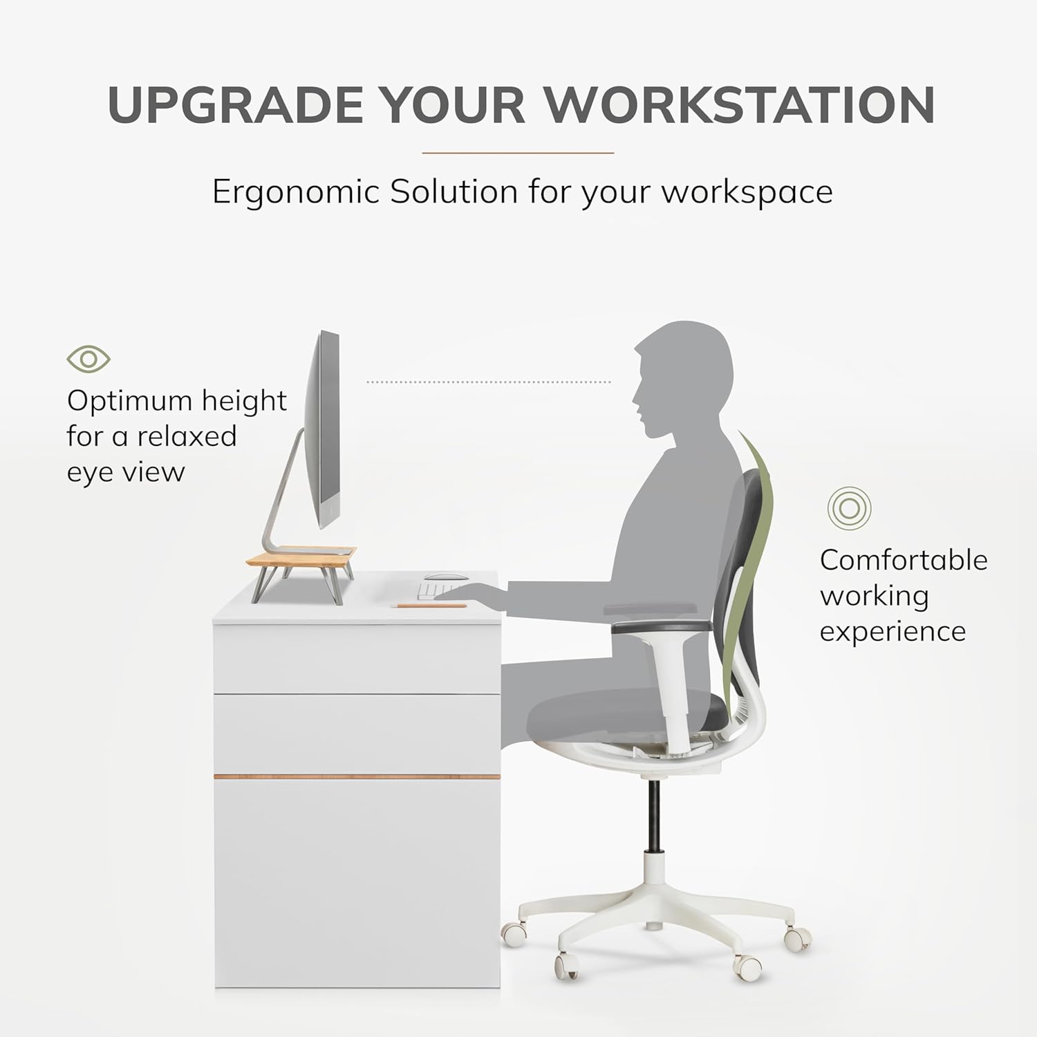 Anji Mountain Monitor Stand - Desktop Organizer & Laptop Riser, Ergonomic Monitor Riser, Space-Saving Monitor Stand for Desk, Durable Construction, Easy Assembly, Ideal for Home & Office,White Wash