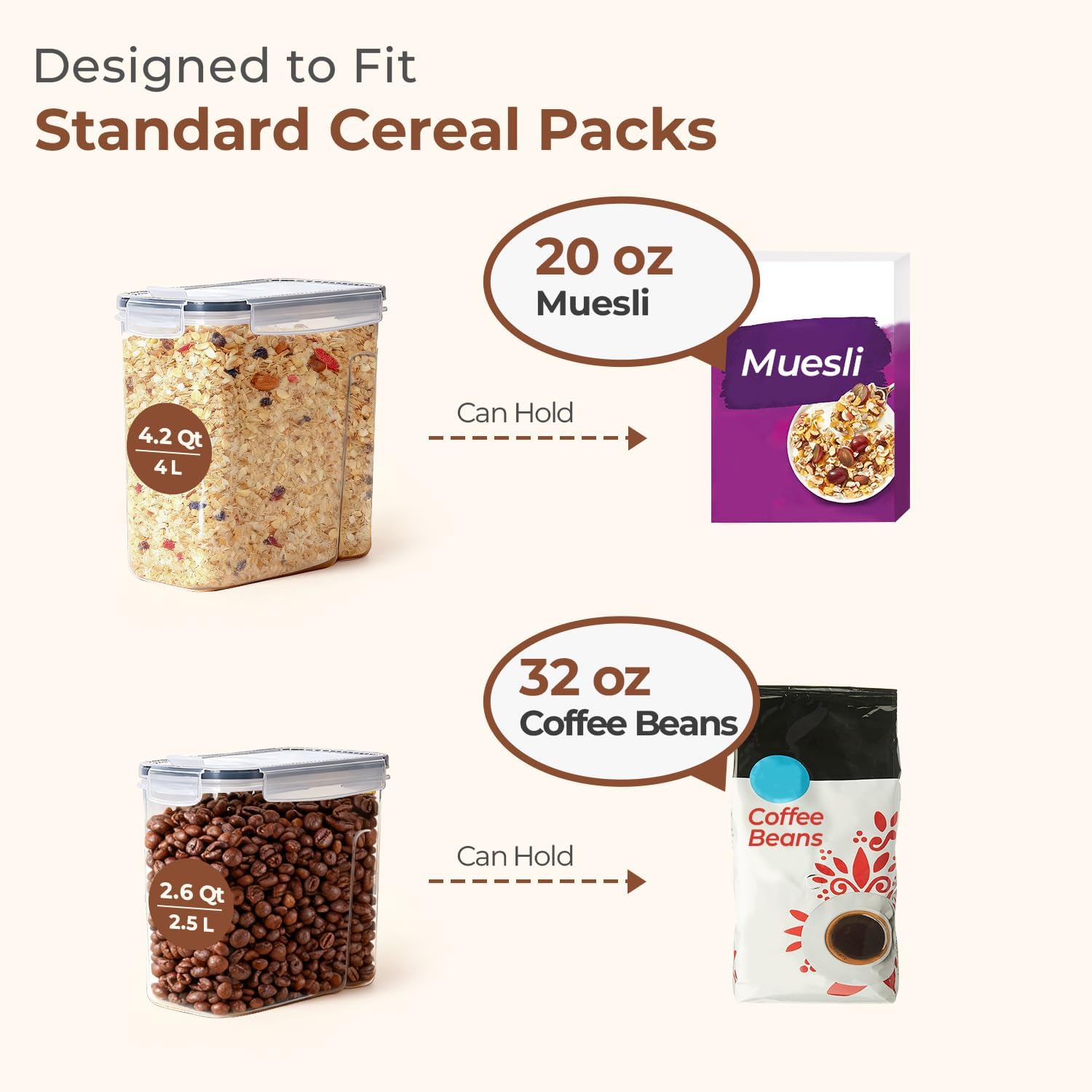 - 【Airtight Seal for Freshness 】4-sided locking lids with silicone rings create an airtight, moisture-blocking seal. 4L and 2.5L sizes fit bulk buys and daily use—keep cereal, rice, pet food, and dry goods fresh, not stale. Secure, air-tight design ideal for pantry storage; durable containers with lids organize kitchens while preserving food texture. Say goodbye to stale snacks and clutter with these versatile, airtight food storage solutions.