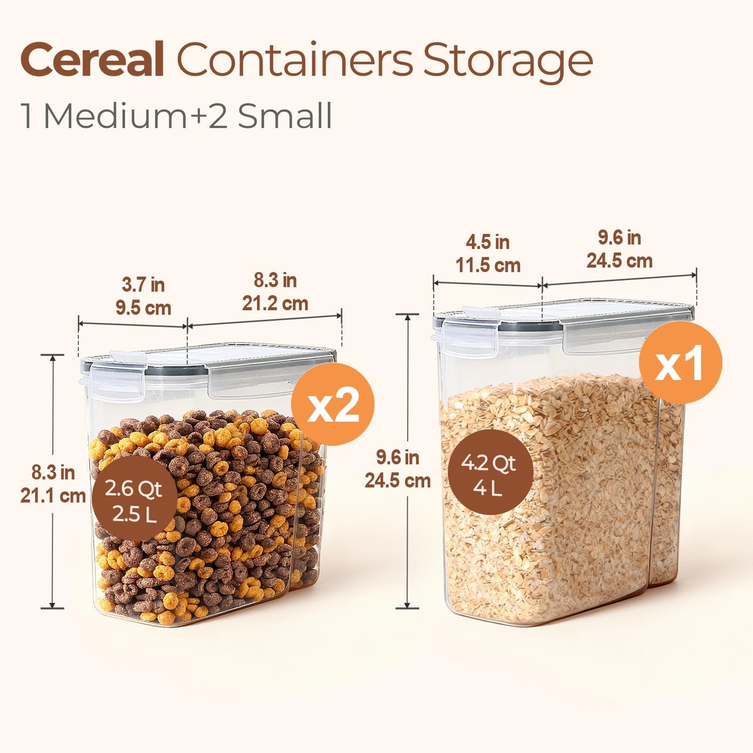 ComSaf 3 PCS Cereal Storage Containers Set, Airtight Food Containers with lid for Rice Pet food, Medium & Small Cereal Dispenser for Kitchen Pantry Organization (4L + 2.5L×2)