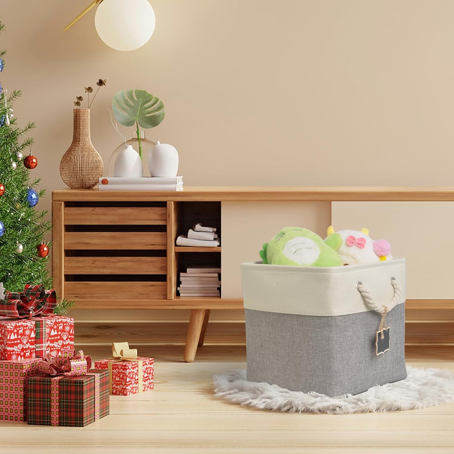 - STYLISH & PRACTICAL DESIGN Featuring dual-color stitching and two strong cotton rope handles, these cube storage bins offer a clean, modern look while being easy to pull off shelves or carry room to room. The neutral tone makes them both decorative and functional — stylish enough for display, strong enough for heavy-duty use.
