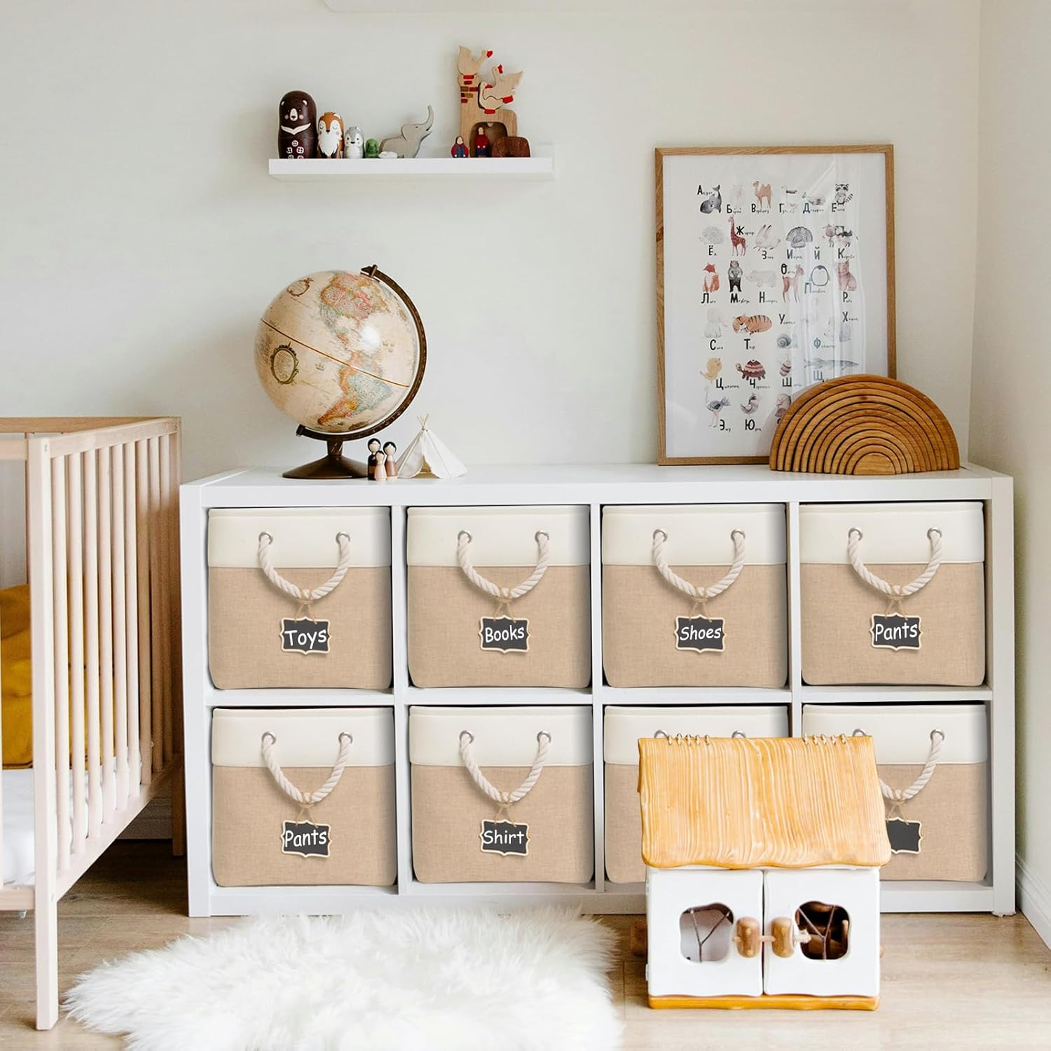 - ECO-FRIENDLY, ODOR-FREE & BUILT TO LAST Crafted with durable linen fabric and eco-conscious EVA polyester lining, these khaki storage cubes are not only a smart choice for your home — but also for the planet. Bins for cube storage completely odor-free and made with non-toxic materials, they’re safe for families, babies, and pets. A reinforced bottom panel and sturdy metal frame around the top ensure each basket holds its shape and supports up to 25 lbs without sagging — perfect for daily use in any room.