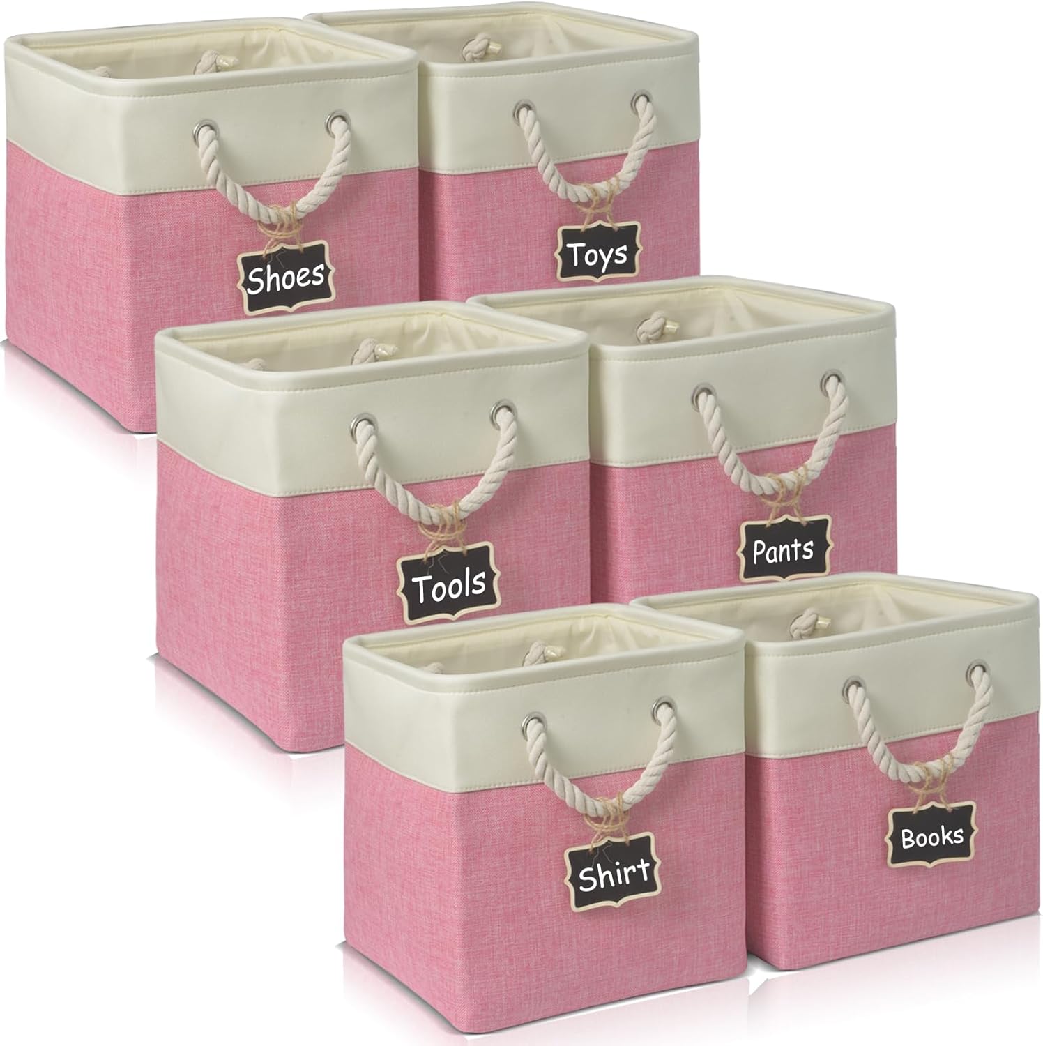 storage cubes 12 x 12[6 Pack],Cube Storage Organizer Bins with Rope Handles, Eco-Friendly Linen Collapsible Organizers for Closet, Nursery, Toys, Office, Bathroom – Dual Color Design.(White&Pink)
