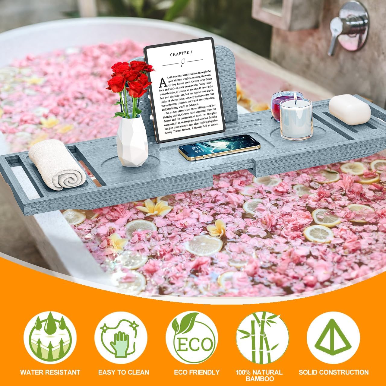 Bathtub Tray Caddy - Bath Tray - Bath Tub Tray Caddy - Bamboo Bath Tray for Tub - Expandable Size, Fits Most Tubs