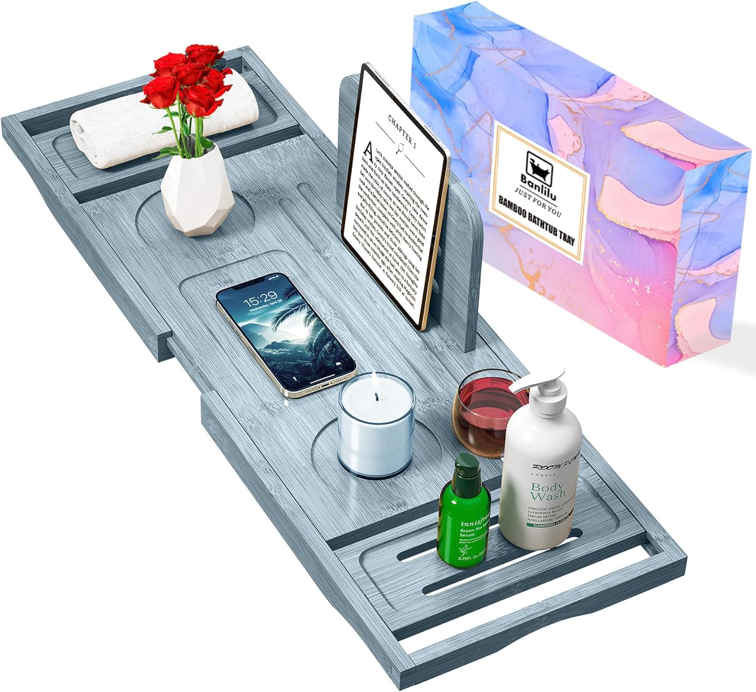 - 🎁LUXURY SPA EXPERIENCE AT HOME: Banlilu Tub Tray brings peace and tranquility right into your home’s bath time experience. Relax and unwind after a long day & treat yourself to some well deserved me-time with our expandable bamboo bathtub tray.