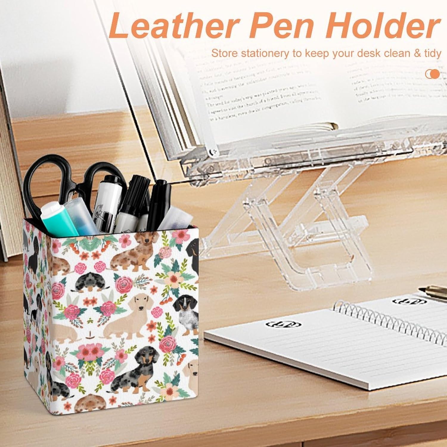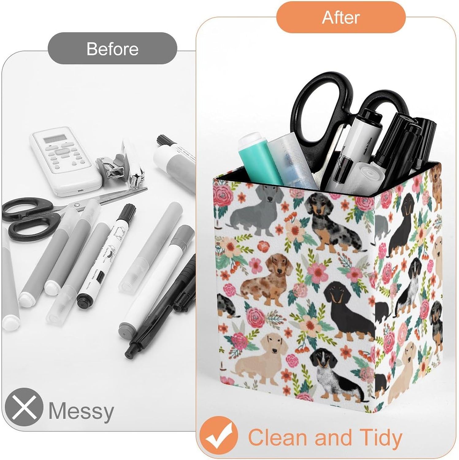 Square Pen Holder & Pencil Organizer for Desk - Office Storage Organizer, Markers/Makeup Brushes/Scissors Holder, Compact Desk Decor Accessories for Home Classroom School(Dachshund)