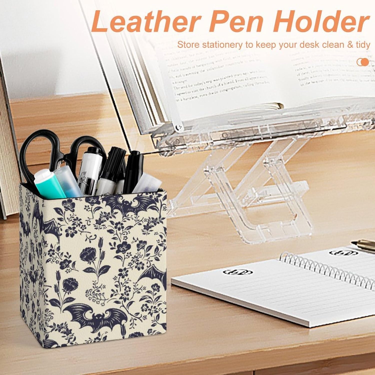 Square Pen Holder & Pencil Organizer for Desk - Office Storage Organizer, Markers/Makeup Brushes/Scissors Holder, Compact Desk Decor Accessories for Home Classroom School(Goth Bats)