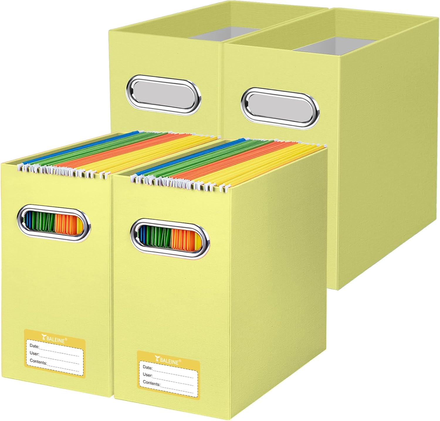 BALEINE File Organizer Box, Cardboard File Folder Organizer with Handle for Letter Size, Portable Collapsible Hanging Filing Box for Home Office Document Storage (4 Pack, Yellow)