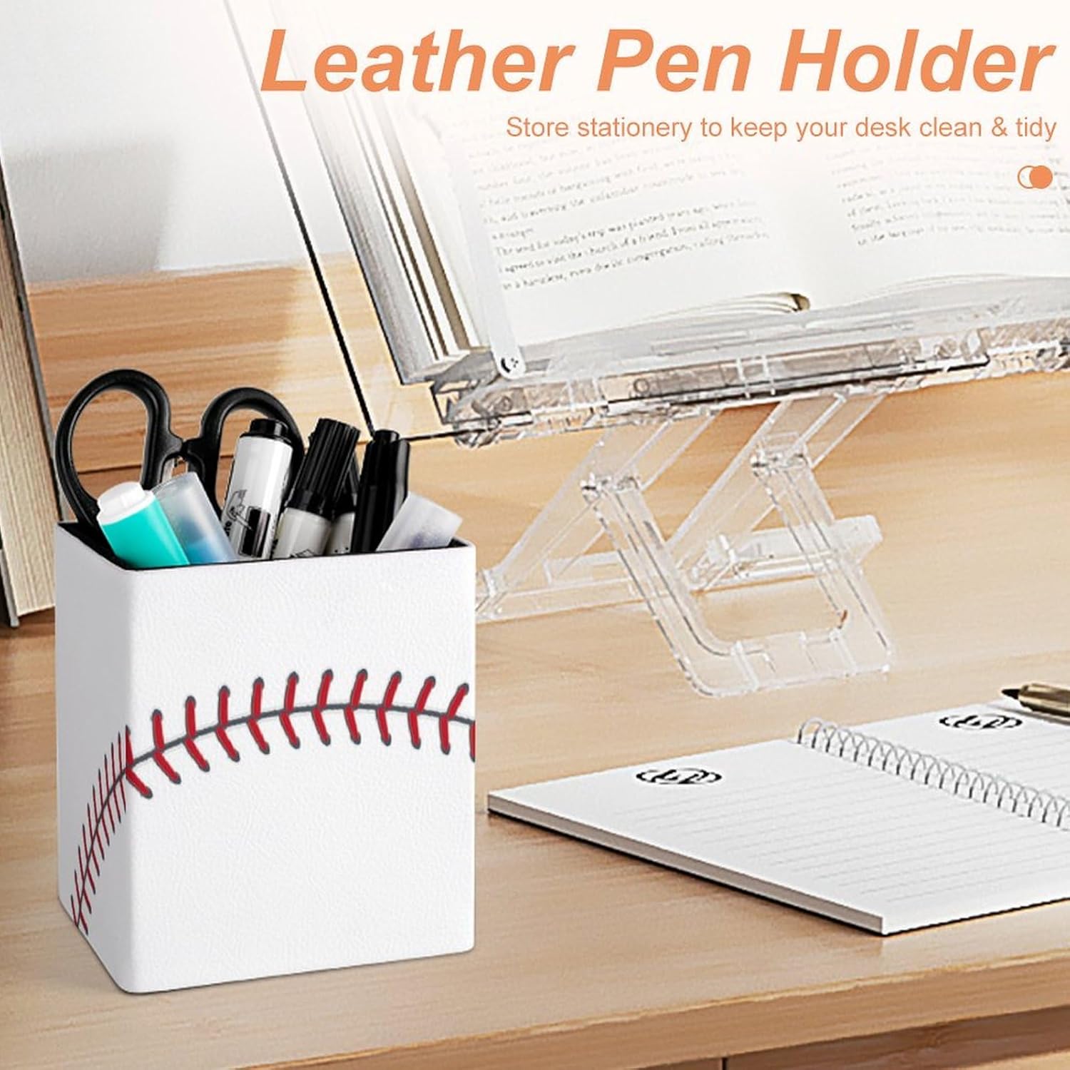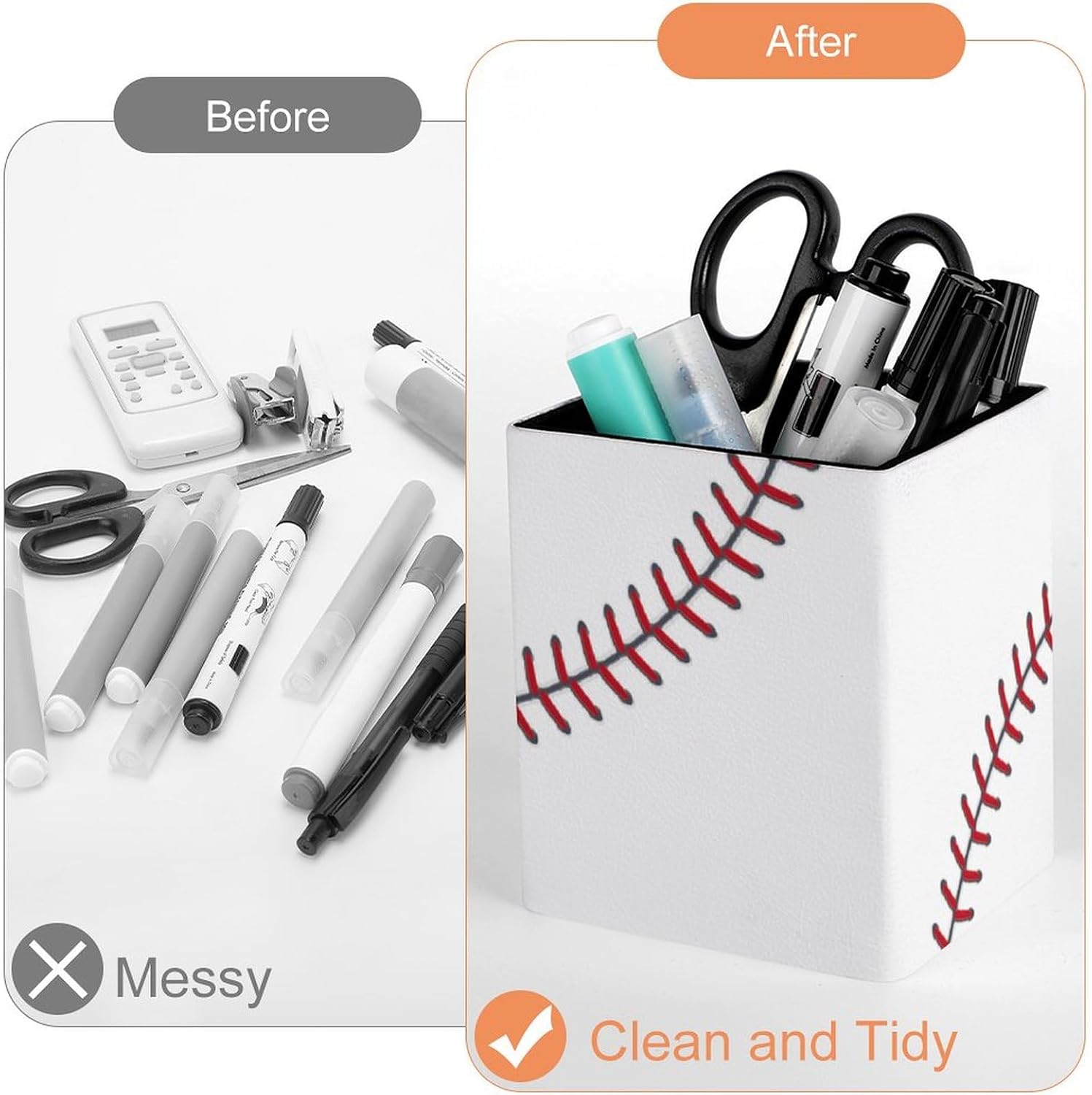 Square Pen Holder & Pencil Organizer for Desk - Office Storage Organizer, Markers/Makeup Brushes/Scissors Holder, Compact Desk Decor Accessories for Home Classroom School(Baseball Design)