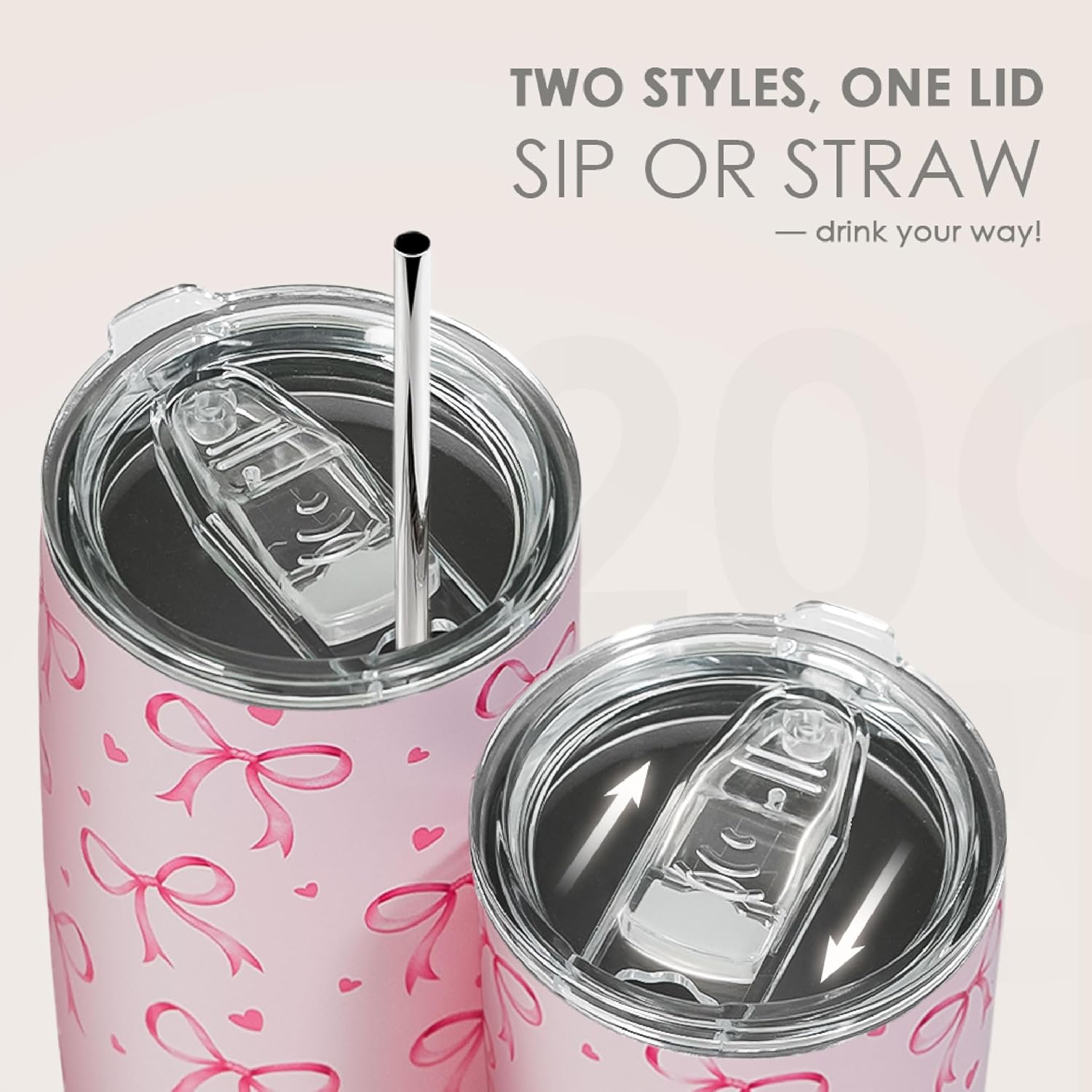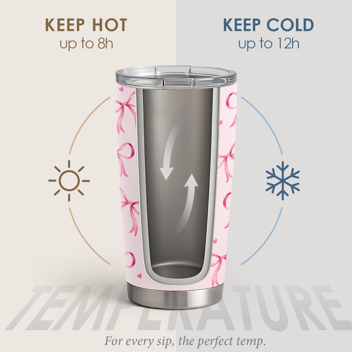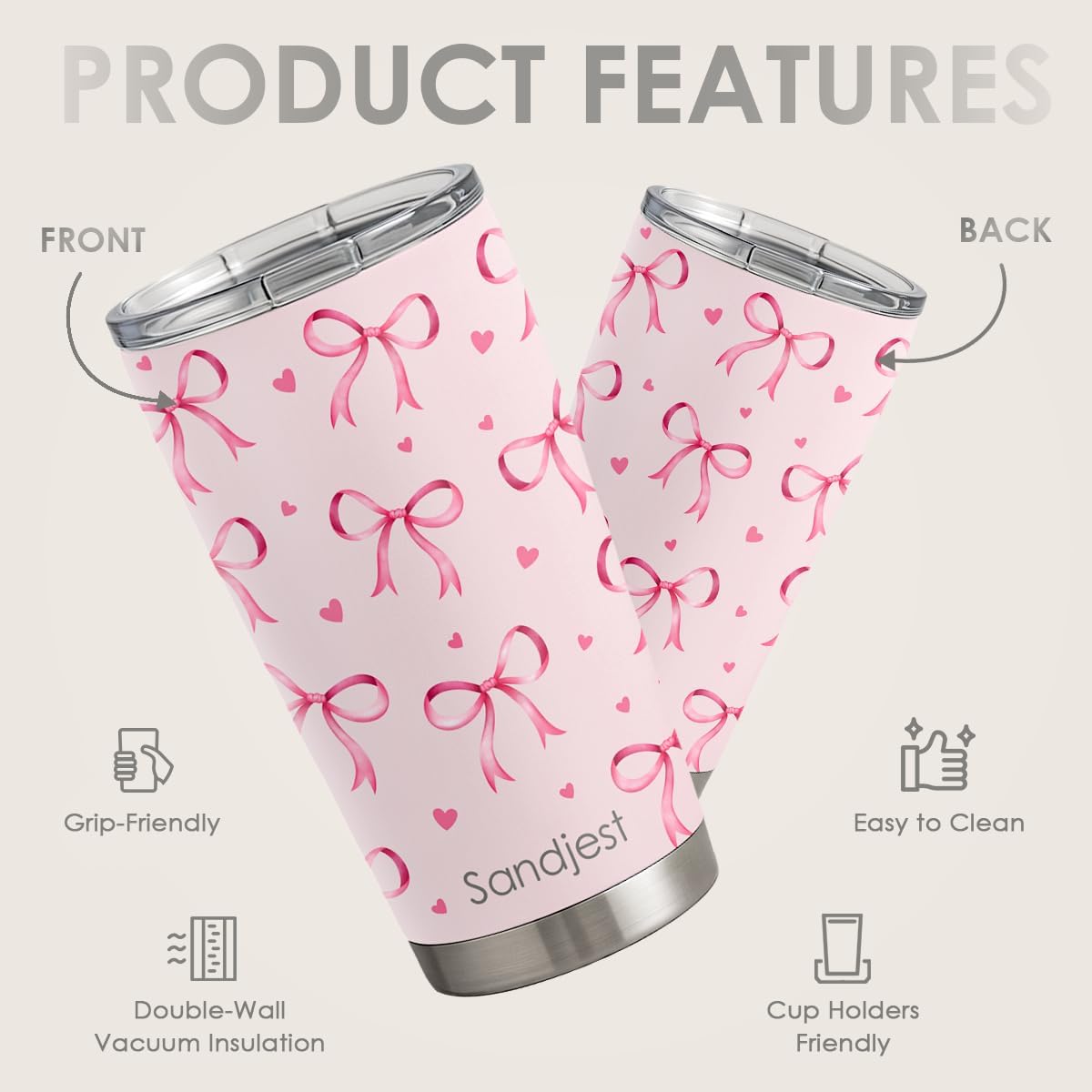SANDJEST Bow Tumbler 20oz Stainless Steel Insulated, Travel Coffee Cup, Bow Gifts for Women Girls Teen, Birthday Christmas