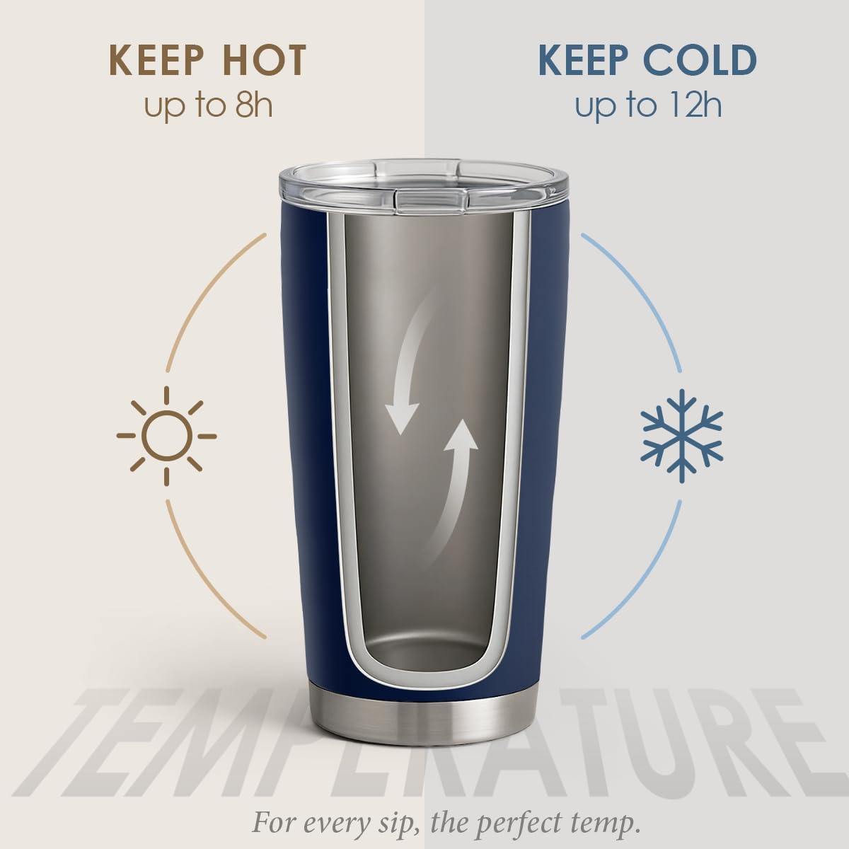 SANDJEST Navy Tumbler 20oz Stainless Steel Double Wall Vacuum Insulated, Travel Coffee Cup, Gifts for Men Women Birthday Christmas
