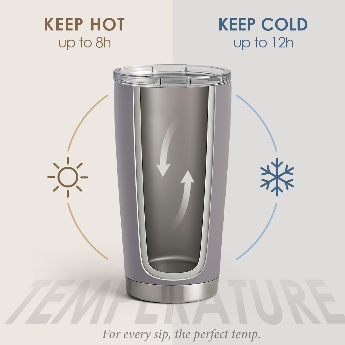 SANDJEST Gray Tumbler 20oz Stainless Steel Double Wall Vacuum Insulated, Travel Coffee Cup, Gifts for Men Women Birthday Christmas
