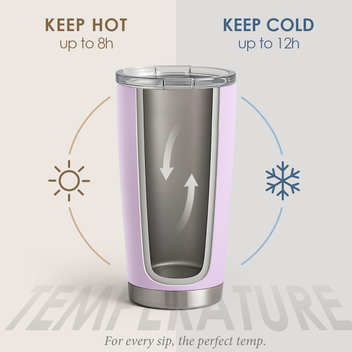 SANDJEST Purple Tumbler 20oz Stainless Steel Double Wall Vacuum Insulated, Travel Coffee Cup, Gifts for Men Women Birthday Christmas