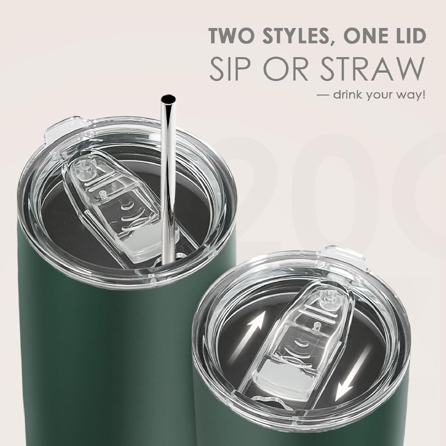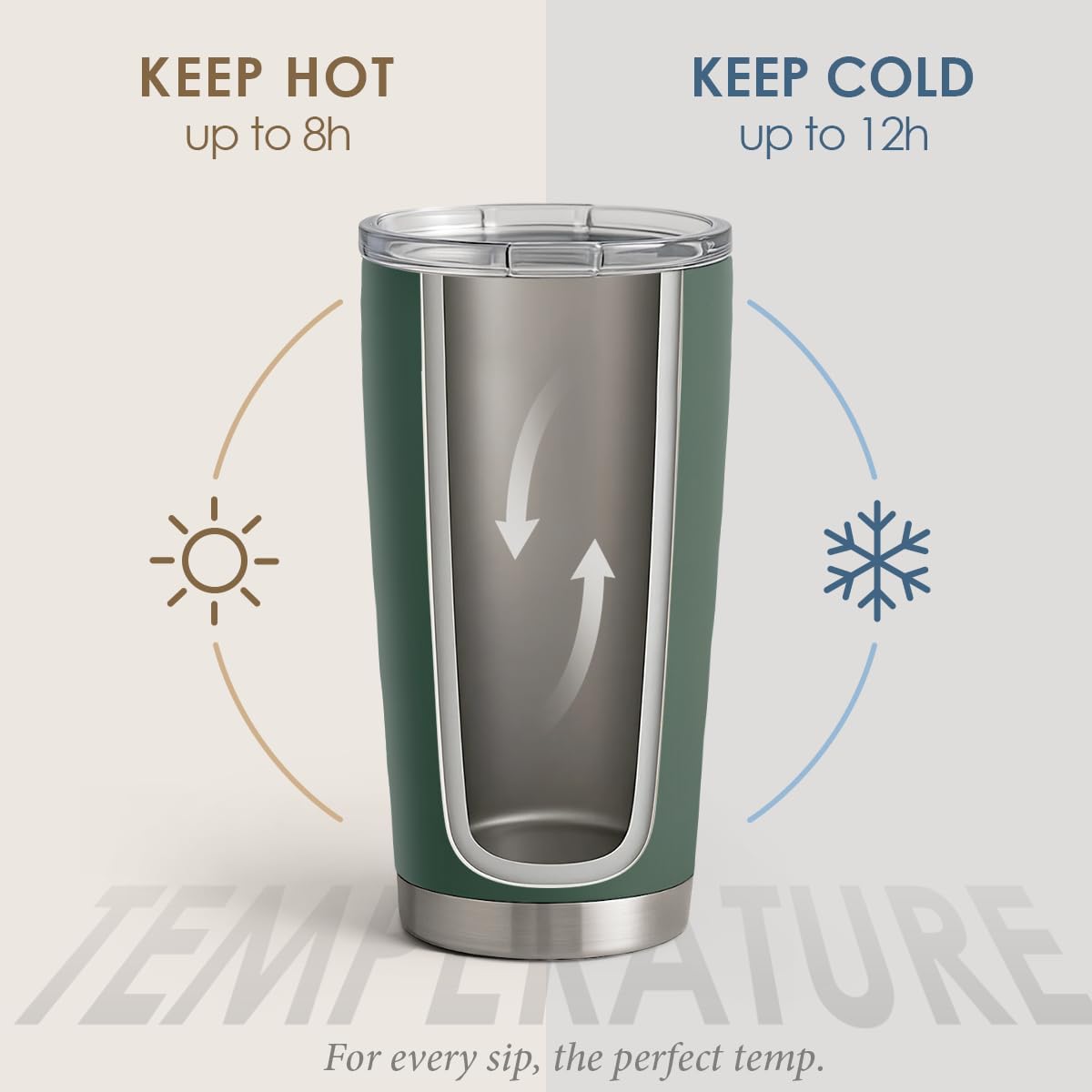 SANDJEST Dark Green Tumbler 20oz Stainless Steel Double Wall Vacuum Insulated, Green Travel Coffee Cup, Gifts for Men Women Birthday Christmas