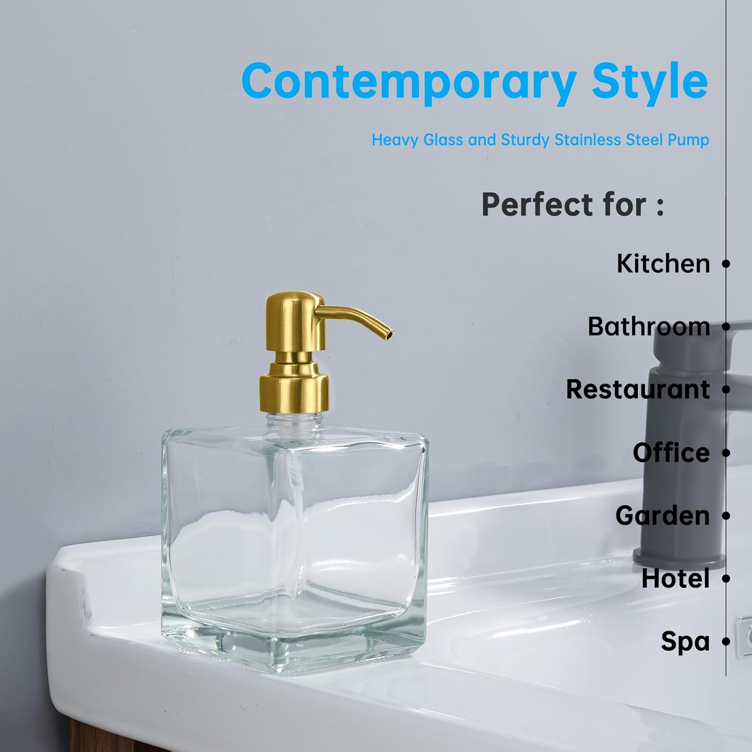 - Liquid Soap Dispenser Large Capacity Soap Bathroom: Cube glass bottle with stainless steel pump, heavy and sturdy