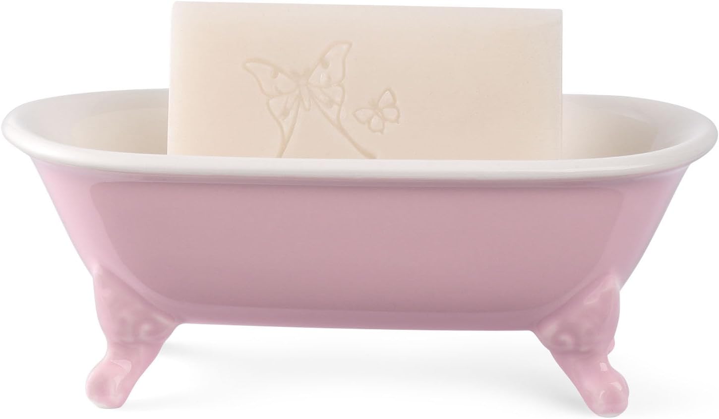 - Style: This ceramic soap dish is inspired by a vintage claw-foot bathtub and features a distressed white modern finish with two tone colors. this soap dish will fit perfectly in any bathroom sink or kitchen countertop.