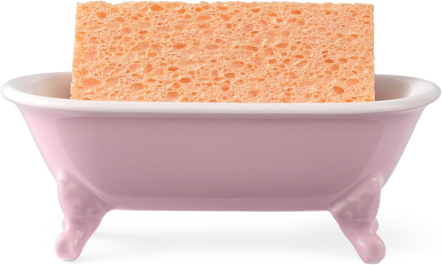6.5" Ceramic Mini Decorative Clawfoot Bathtub Bar Soap Dish, Kitchen Sponge Holder and Shower Tray for Bathroom, 1 Pack (Pink)