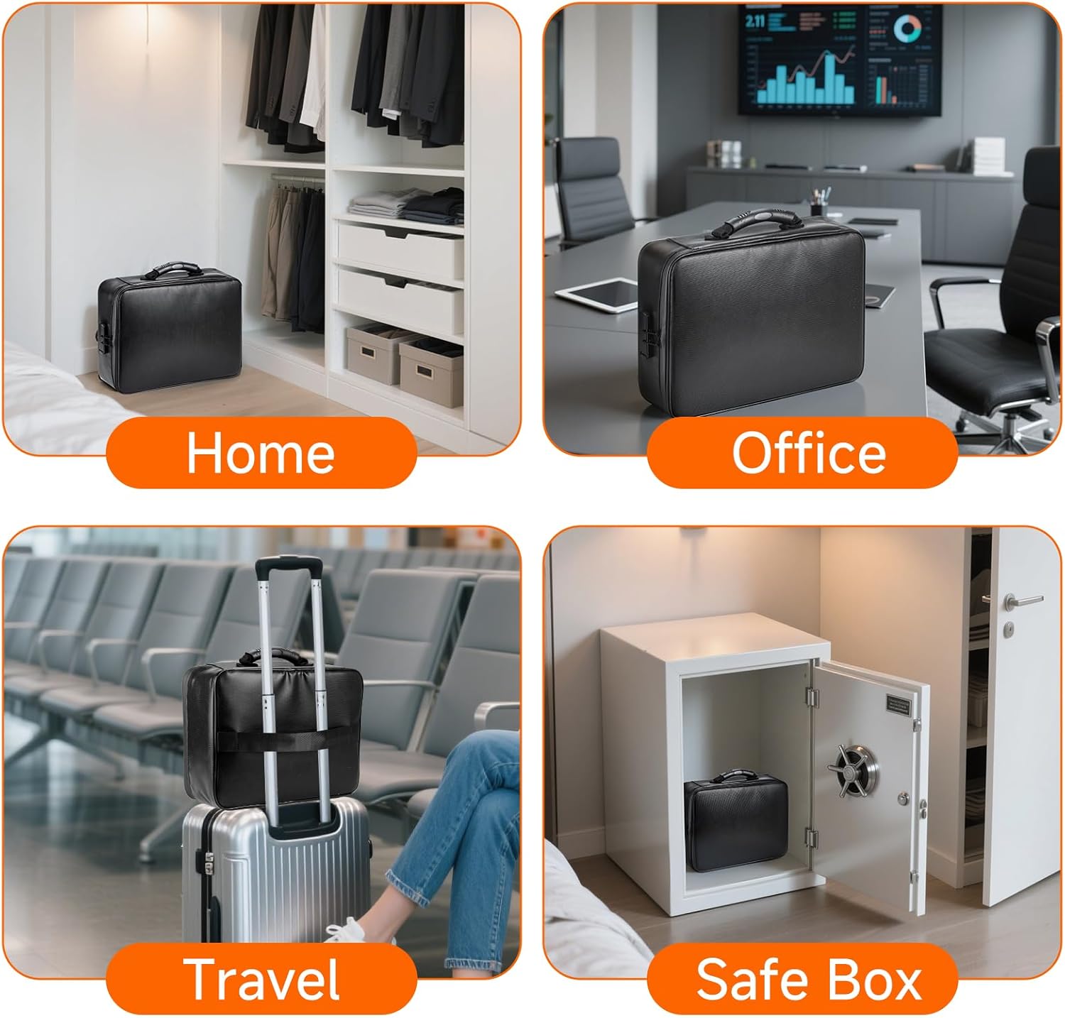 - 🔥5200°F Fireproof & Waterproof Protection: Crafted with upgraded heat-insulated materials, this document organizer withstands temperatures up to 5200°F. Combined with water-resistant layers, it protects your valuables from fire, rain, and spills—perfect for home, office, or travel emergencies.