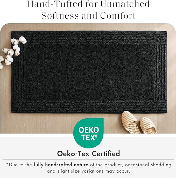 Madison Park Splendor Reversible 100% Cotton Tufted Bathroom Rug-3000 GSM Hotel Quality Luxurious Plush Medium Pile Bath Mat Absorbent, Quick Dry, Shower Room Décor, 24x36 Black