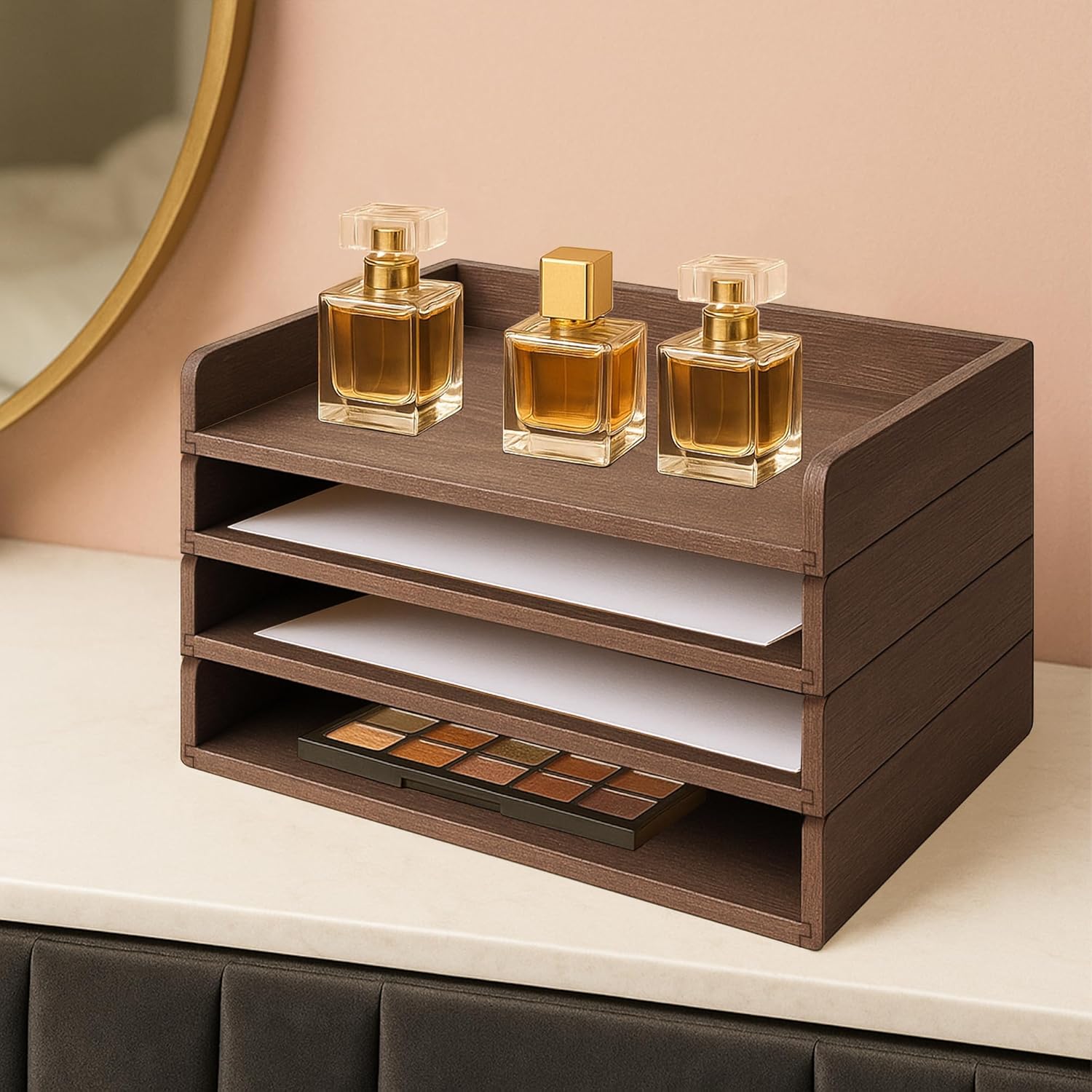 - 【Timeless Wooden Desk Organizer】Keep your desk neat, organized, and visually appealing with our set of 4 wooden paper trays. Whether you're sorting mail, managing documents, or storing files, this elegant organizer offers both functionality and timeless style. Crafted with a warm natural wood finish and clean lines, it's a perfect fit for modern, rustic, or traditional décor.